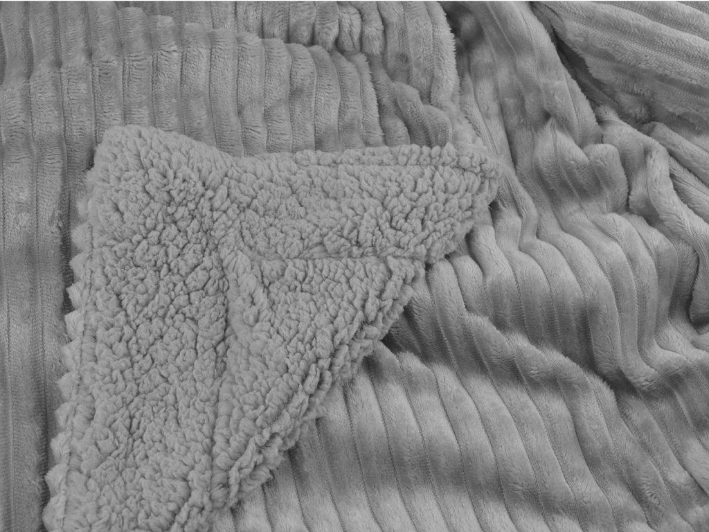 Luxusní deka vás z jedné strany pohladí příjemným fleecem a z druhé zahřeje huňatým beránkem. Materiál je lehký, prodyšný a zároveň teplý.