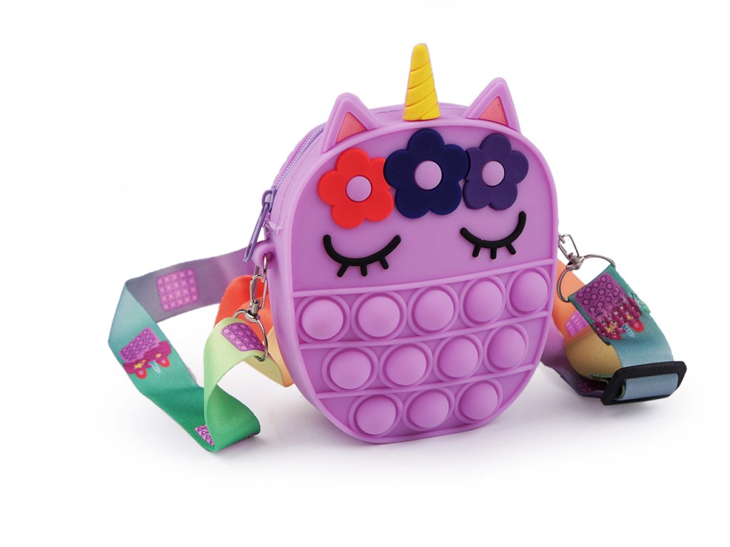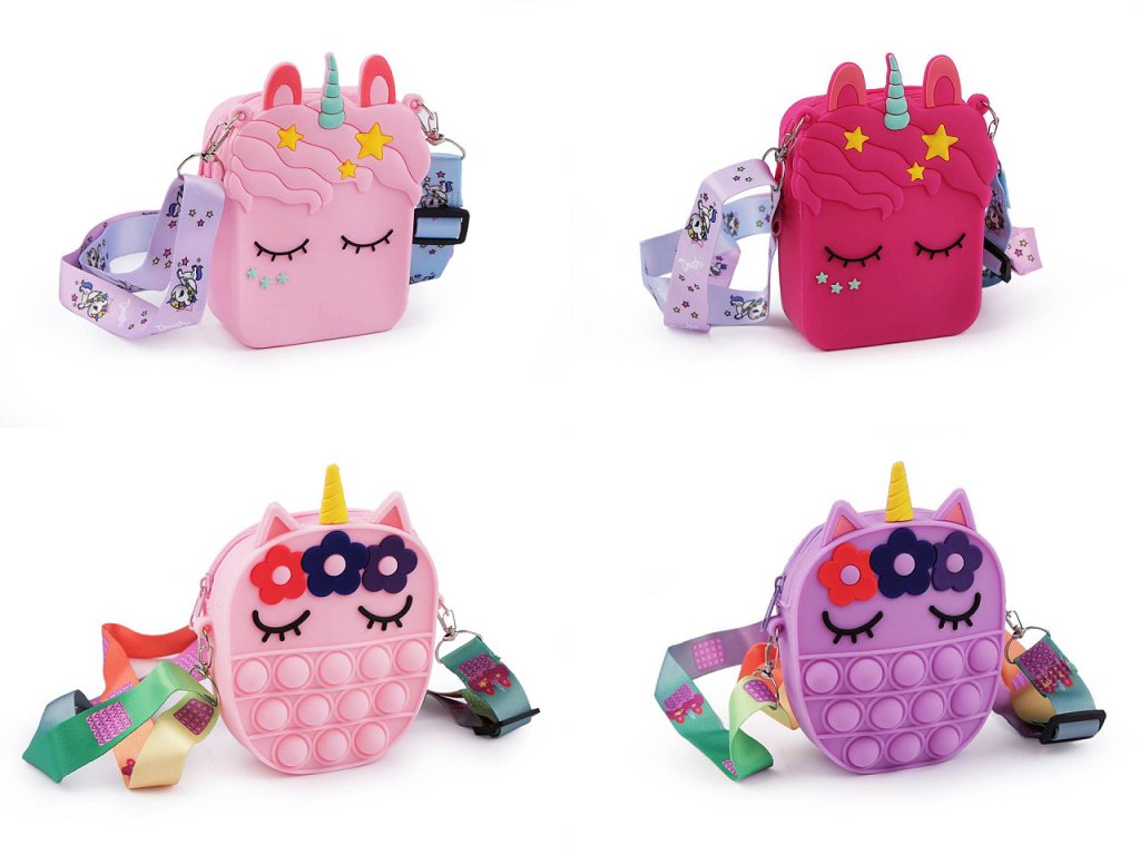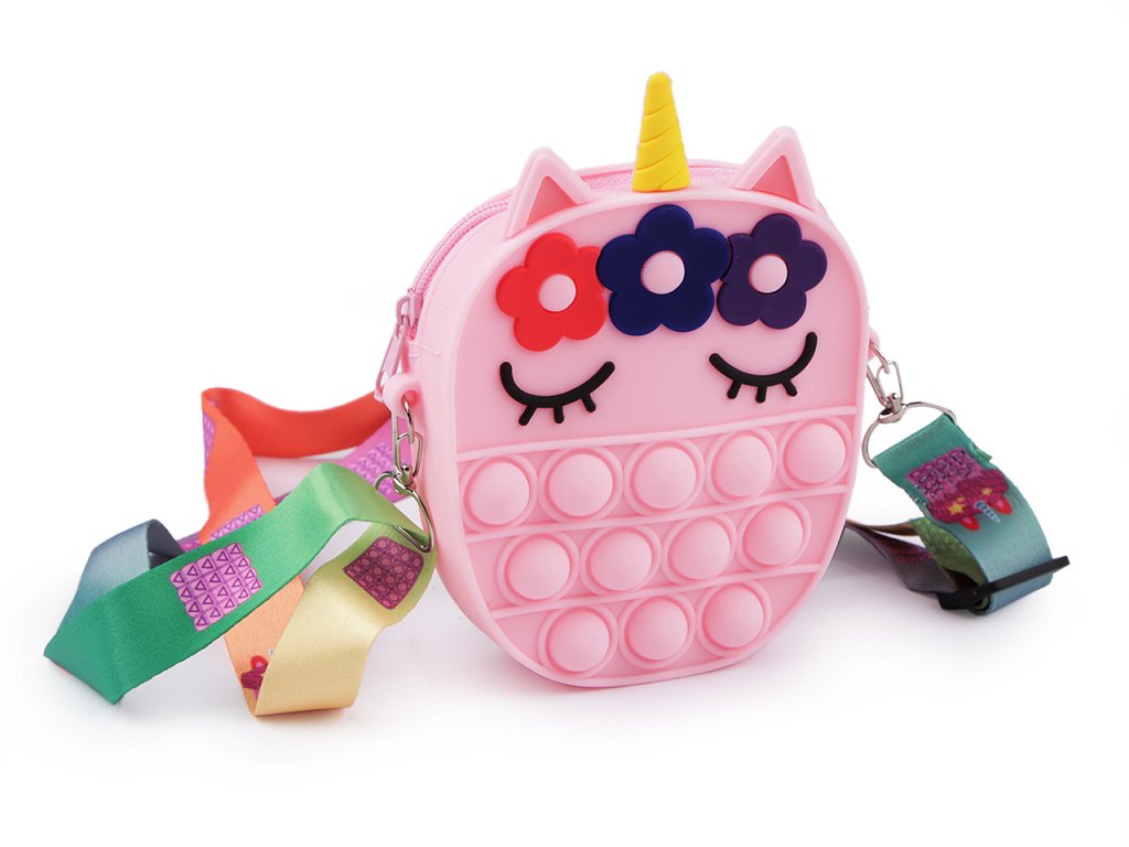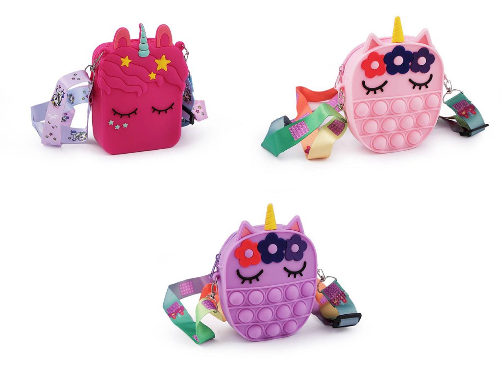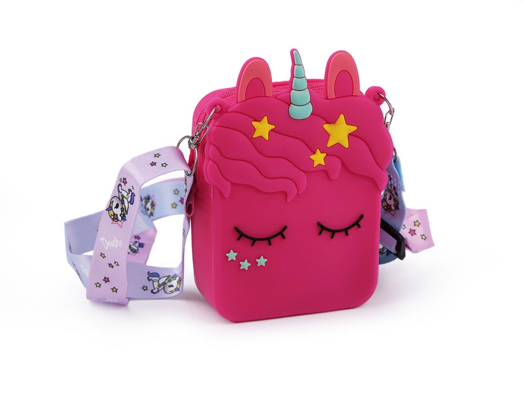 Dětskou silikonovou kabelku s motivem jednorožce si zamilují nejmenší slečny. Schovají do ní své poklady a nezbytnosti na procházky. Když z kabelky sundají popruh, mohou ji používat jako pouzdro nebo klíčenku. Kabelka se uzavírá se na zip. Její součástí je nastavitelný popruh na karabiny.
