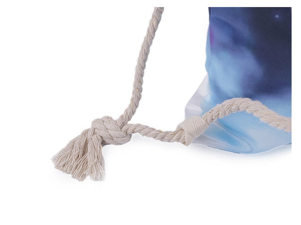 Vak na záda upoutá pozornost svým neotřelým designovým potiskem. Stahuje se jednoduše pomocí šňůrek. Potisk je oboustranný. Do vaku můžete schovat boty, přezůvky i oblečení. Využijí ho nejen sportovci, ale také děti do školy.