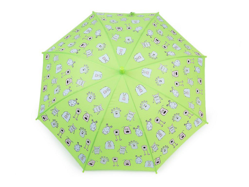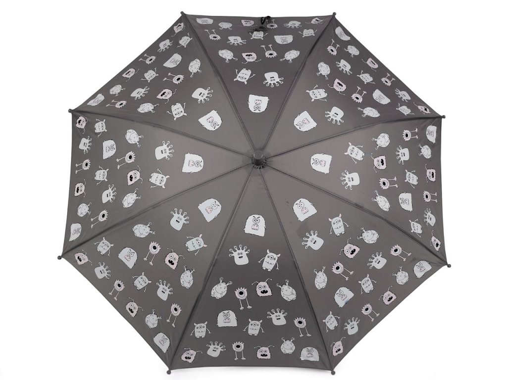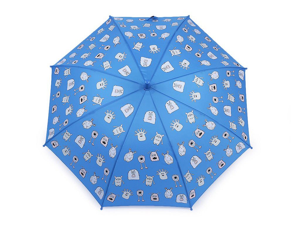 Kouzelný dětský deštník měnící barvy zaujme každé dítě. Bílé obrázky se při kontaktu s vodou samy zabarví. Vaše děti jistě vyrazí ven již za prvními kapkami deště. Konstrukce deštníku je kovová, odolná vůči větru. Deštník má plastovou západku - velmi lehce se otevírá i zavírá. Kovová tyč je zakončena plastovou rukojetí, která je velikostně přizpůsobená dětské ruce. Konstrukce deštníku je z kovového drátu a tvoří osm polí. Dráty jsou zakončené plastovými koncovkami - zmenšují riziko poranění.
