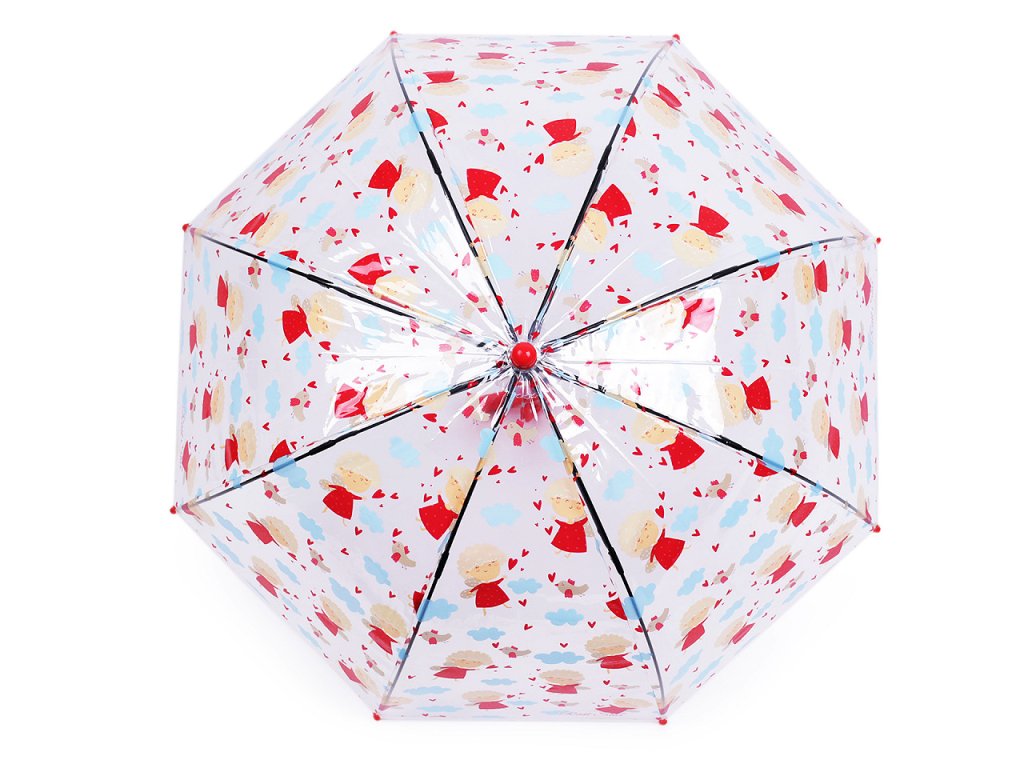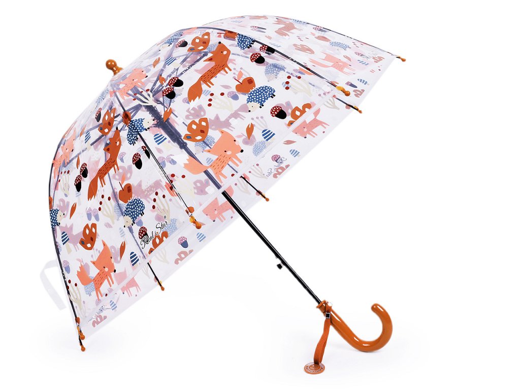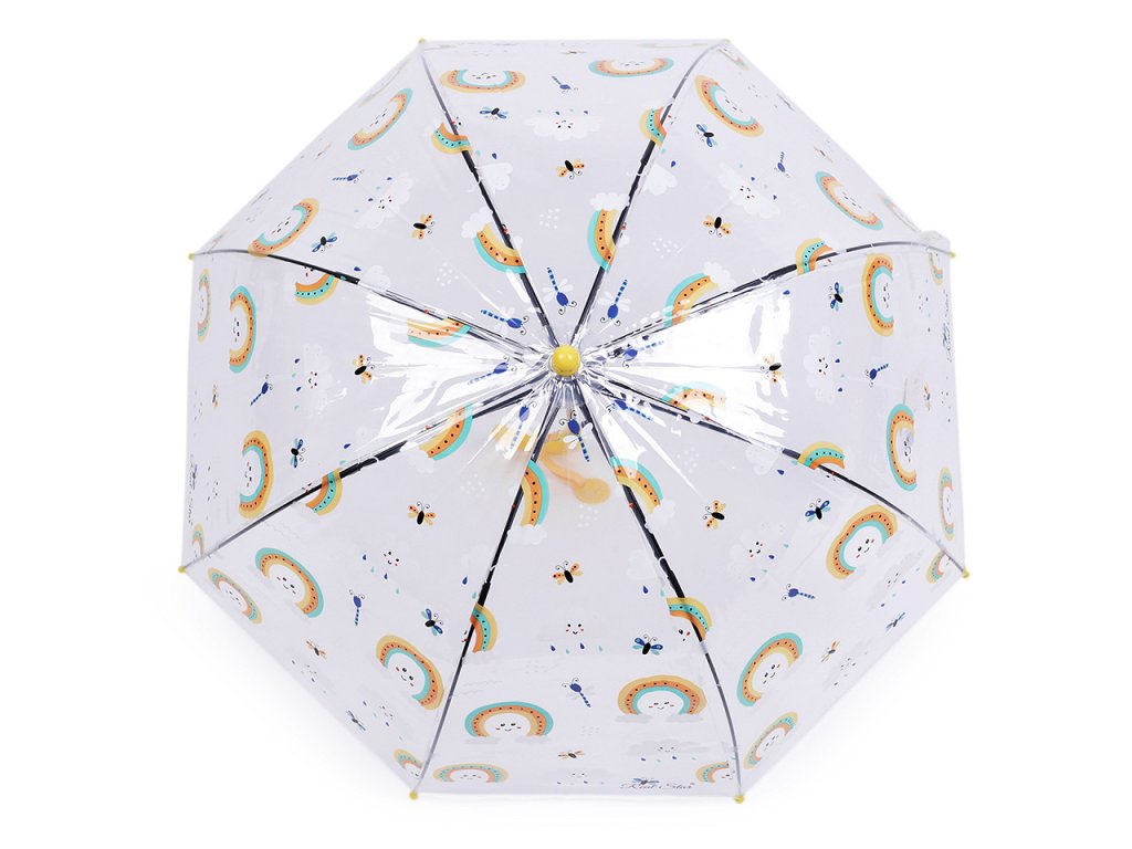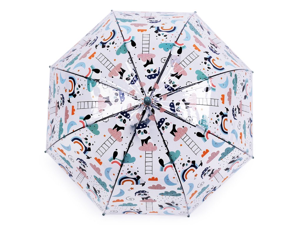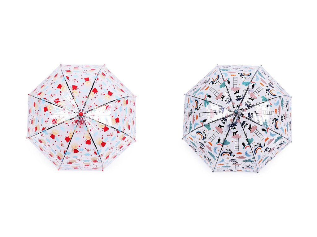 Dětský vystřelovací deštník s barevným potiskem děti nadchne, protože díky průhlednému potahu uvidí ven. Navíc je dost hluboký, budou mít pocit, že jsou celí schovaní. Deštník je vystřelovací, má klasickou tyč zakončenou pevnou rukojetí. Konstrukce deštníku je z pružných lamel a tvoří osm polí.