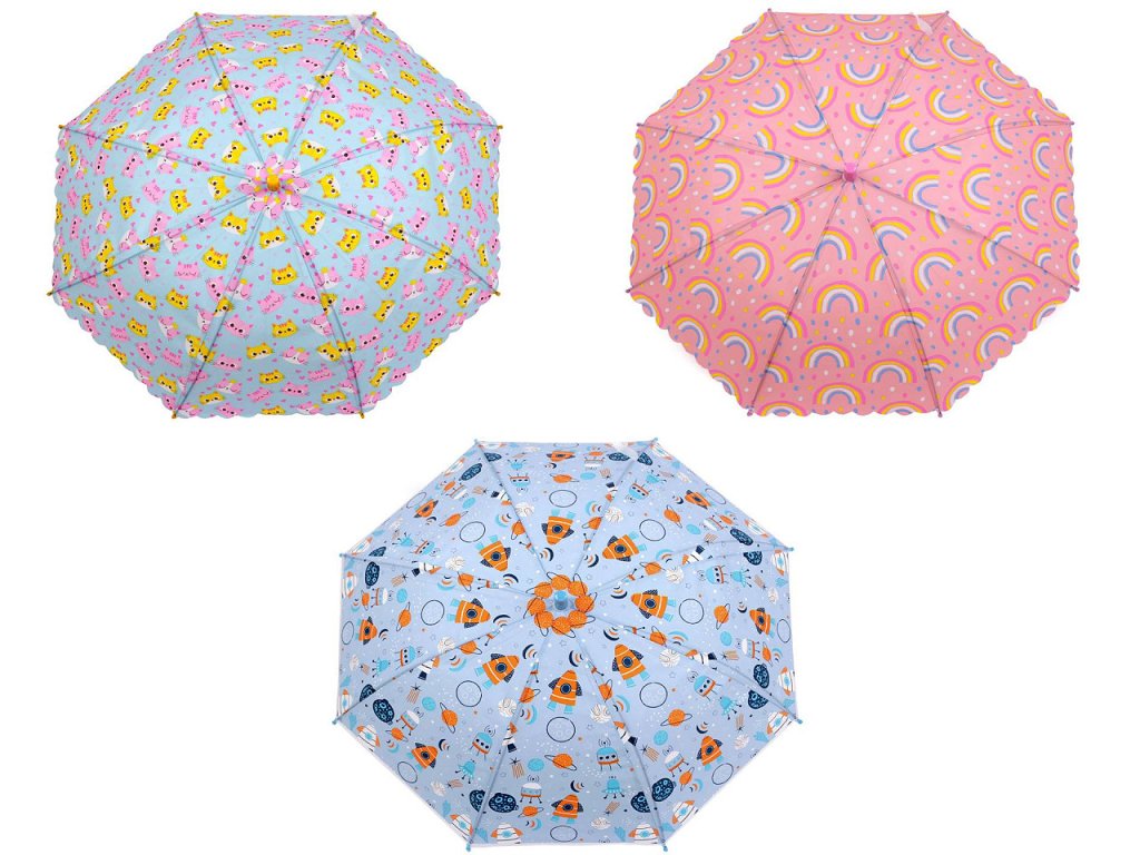 Dětský vystřelovací deštník duha, dino, raketa, kočka
