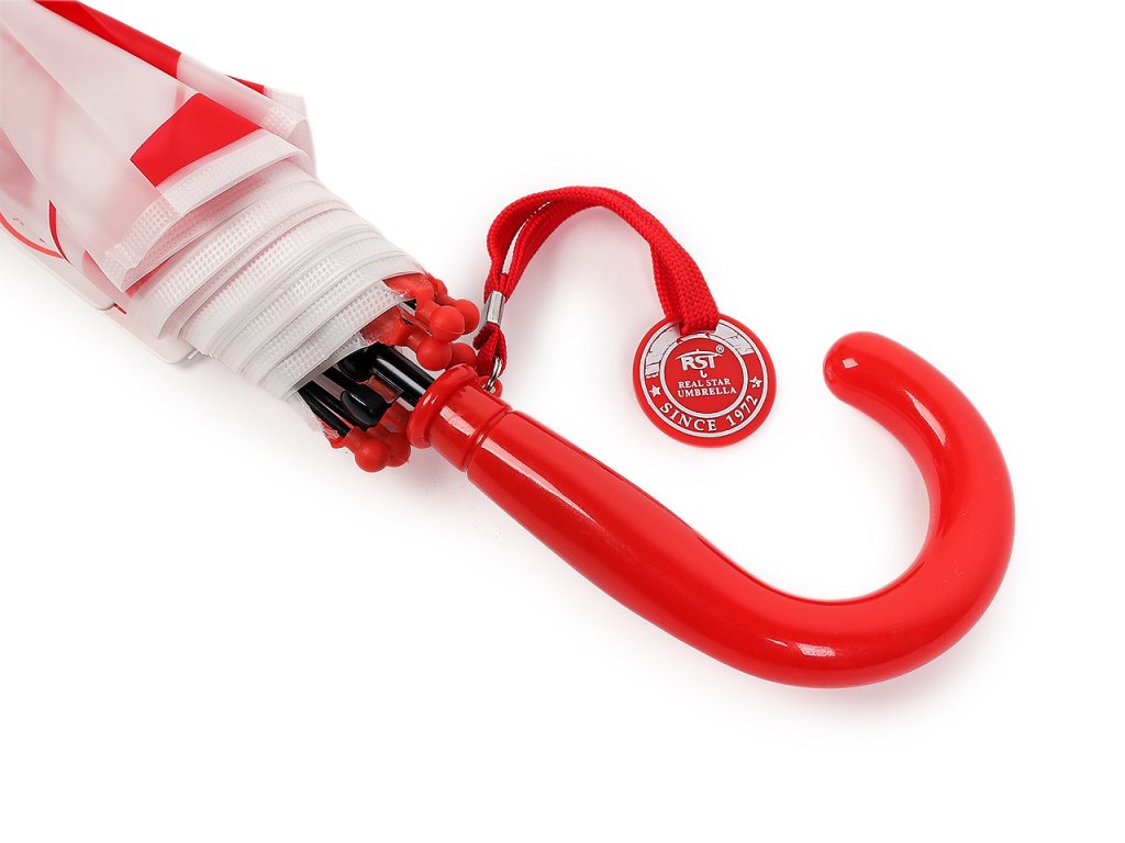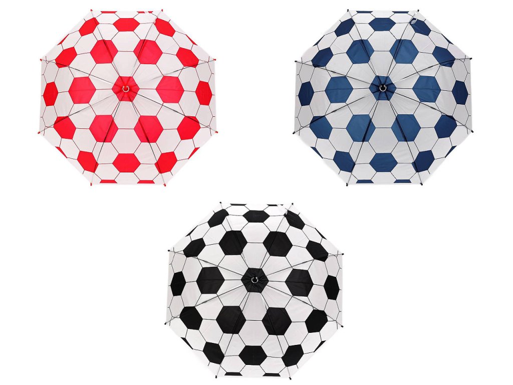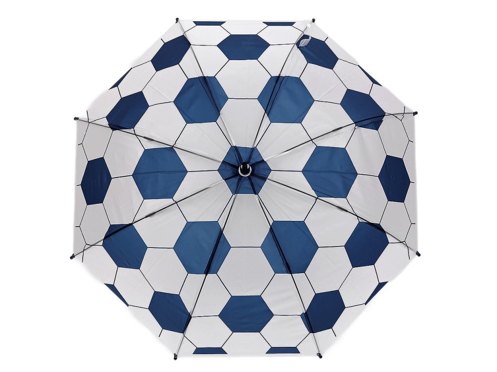 Dětský vystřelovací deštník s fotbalovým motivem potěší hlavně malé fotbalisty. je ideálním společníkem pro malé sportovní nadšence. Díky svému atraktivnímu designu, který připomíná fotbalový míč, si ho děti okamžitě oblíbí. Potah je průsvitný, na rukojeti má deštník visačku, na kterou můžete napsat jméno dítěte. Má klasickou tyč zakončenou pevnou rukojetí. Konstrukce deštníku je z pružných lamel a tvoří osm polí.