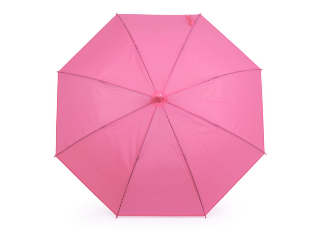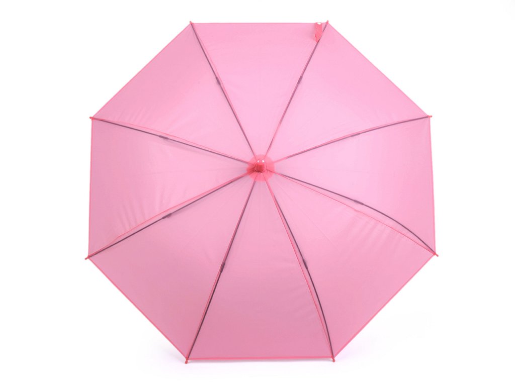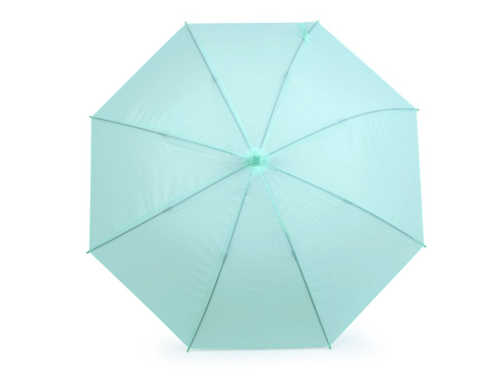 Dívčí deštník s jednobarevným potahem v módních pastelových barvách má už větší velikost. Hodí se pro dívky od cca 8 let. Deštník je vystřelovací, má klasickou tyč zakončenou pevnou rukojetí. Konstrukce deštníku je z kovového drátu a pružných lamel, tvoří osm polí. Díky nim je velice pevný, neohne se ani za největšího nečasu.