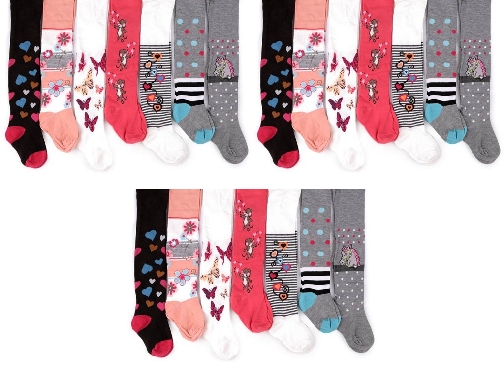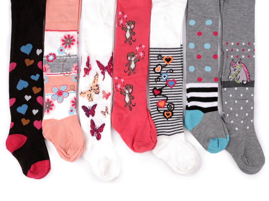 Barevné dívčí punčochy jsou zajímavé svým designem s různými motivy. Jsou z měkkého bavlněného materiálu. Mají pružný pas, příjemně se nosí.