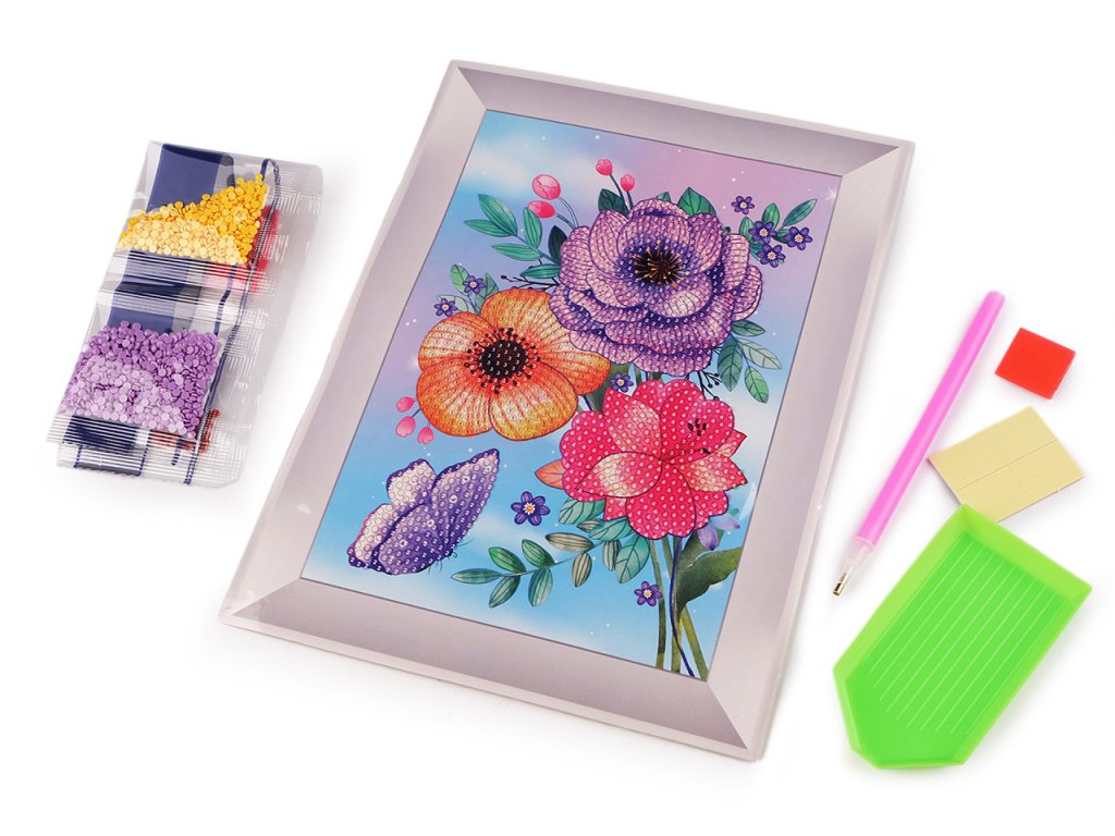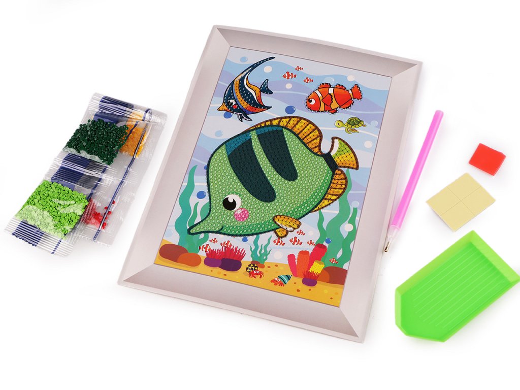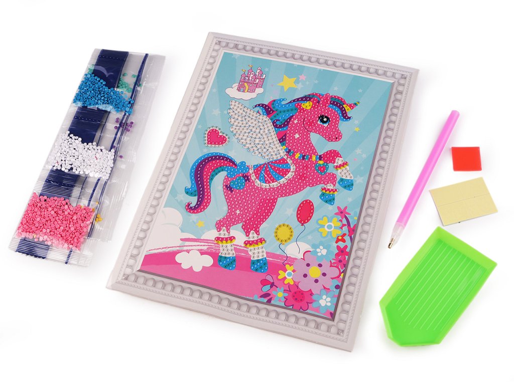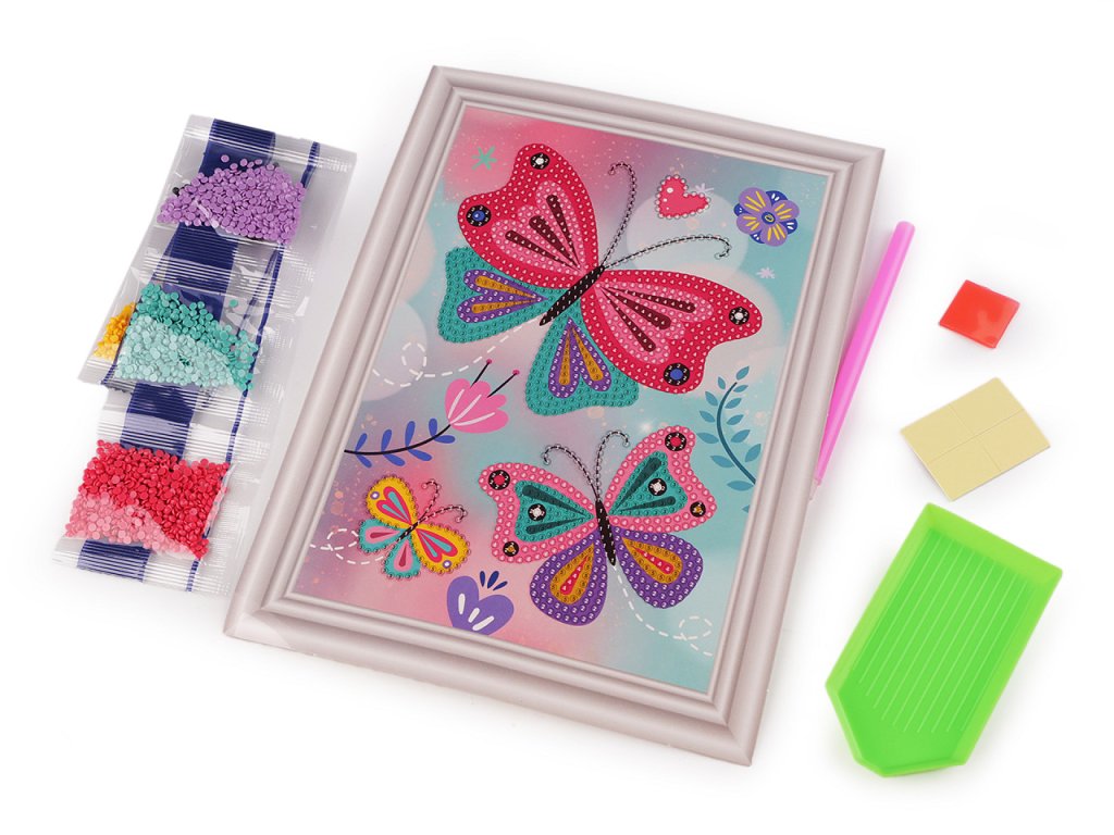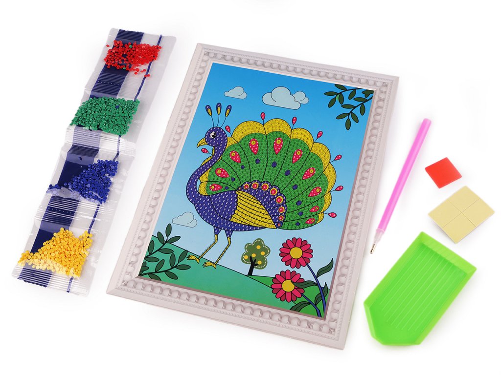 Staňte se umělcem a poskládejte si obrázek z třpytivých kamínků. Sada, určená spíše dětem, naučí nenásilnou formou trpělivosti. Obrázek nemusí vyskládat celý, diamanty pokryjí jen určité části. Rámeček, který vidíte kolem obrázku je součástí potisku papíru, je velice realistický.