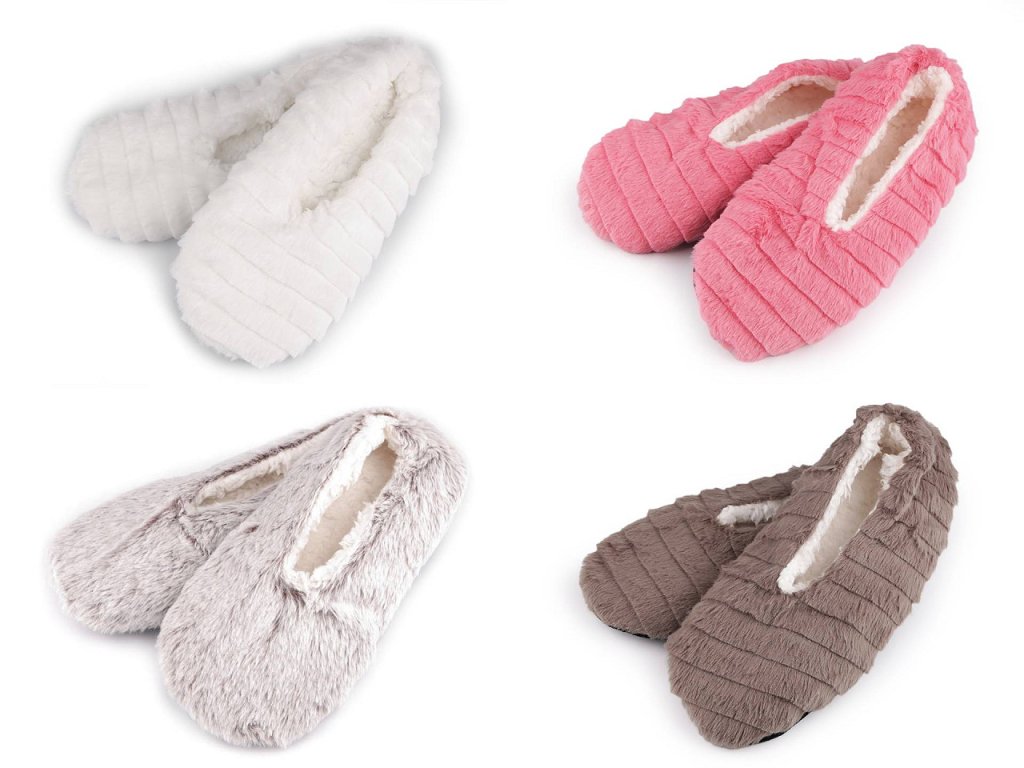 Dámské balerínky jsou skvělé jako domácí obuv. Jsou heboučké, z vrchní strany mají umělou kožešinu, uvnitř je teplá chlupatá podšívka, která věrně imituje vlnu. Protiskluzové gumové tečky na chodidle zabrání uklouznutí.