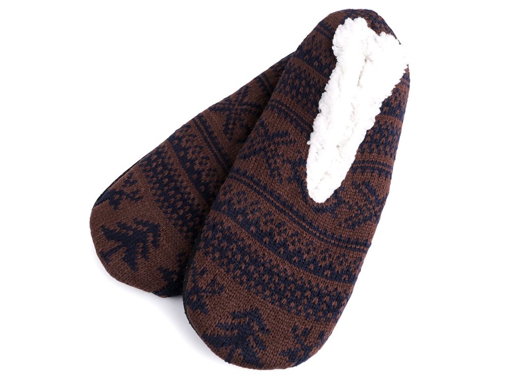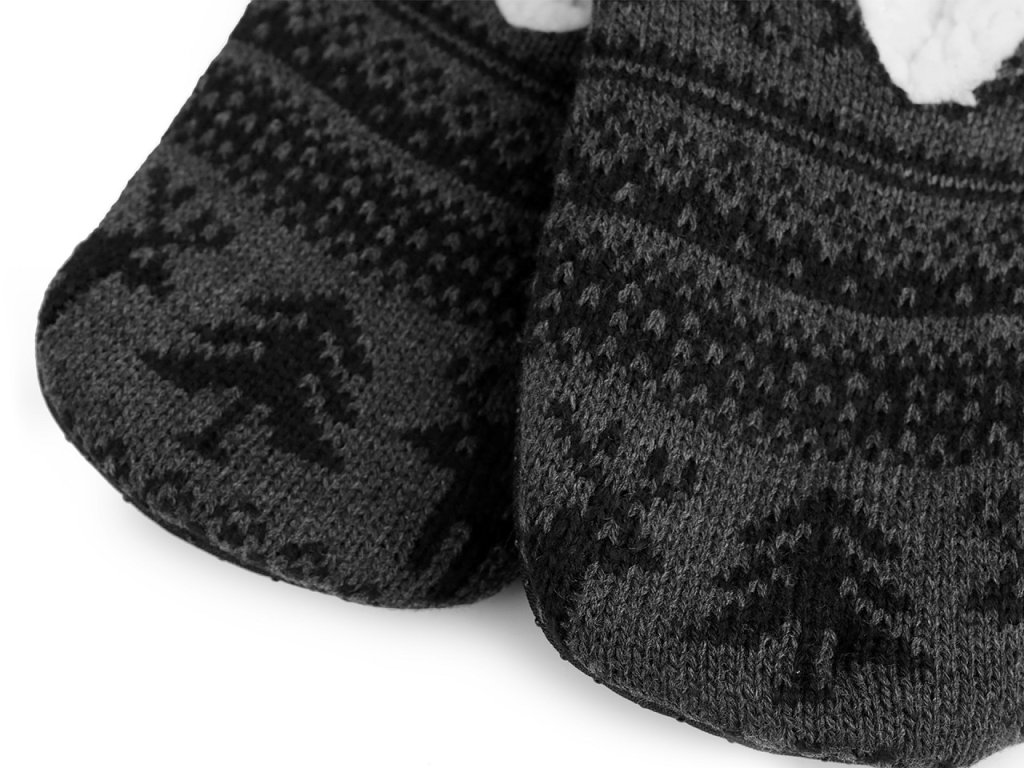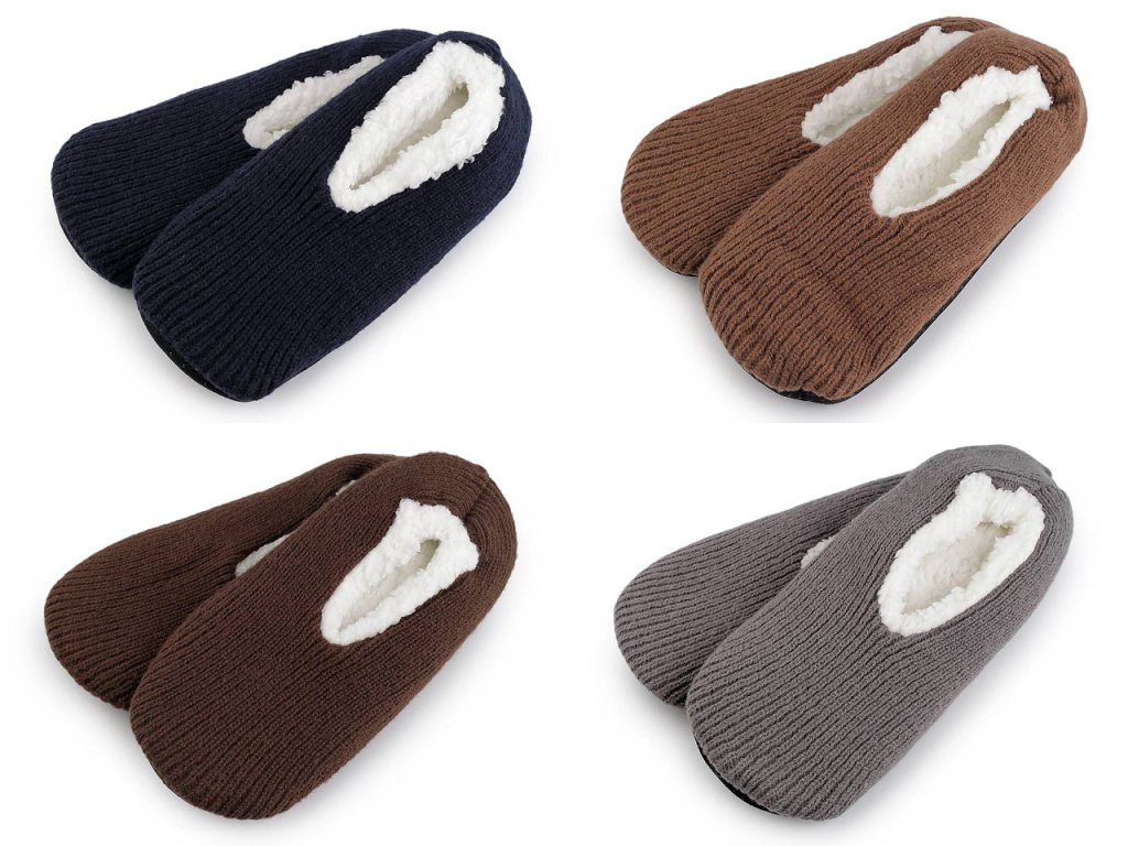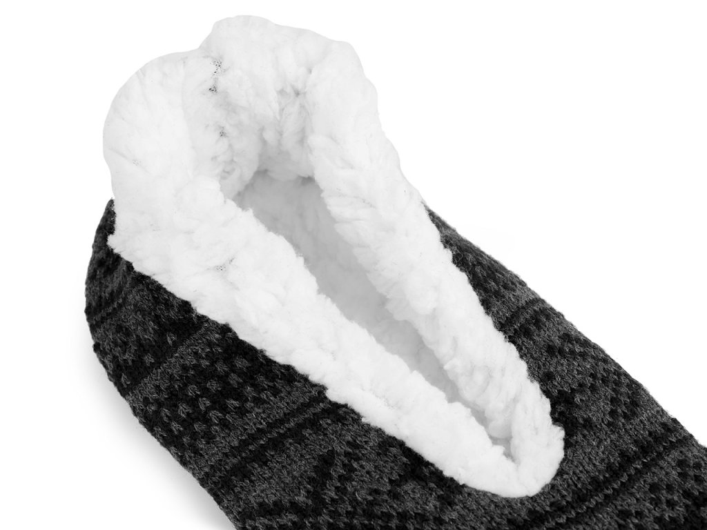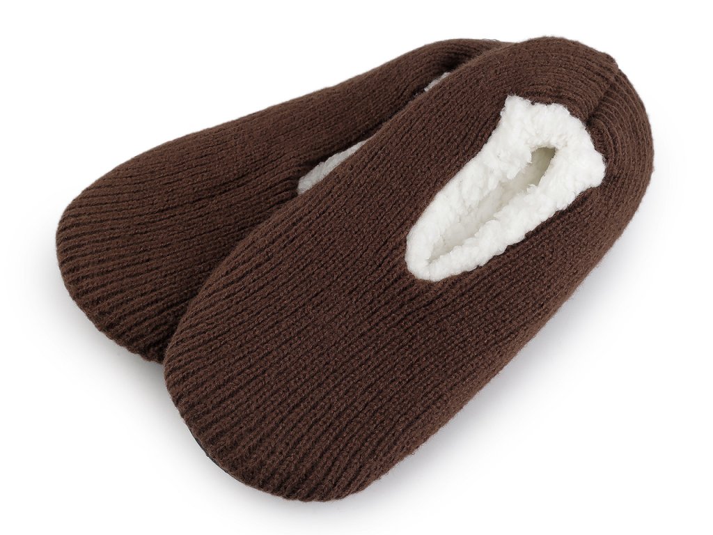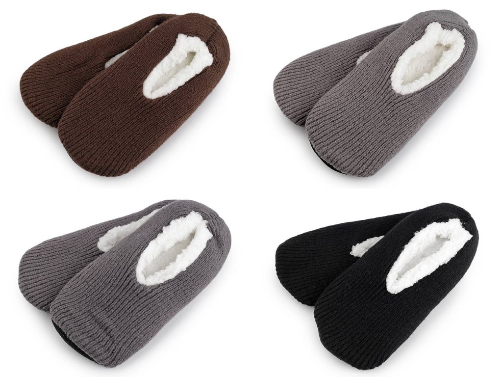 V domácí obuvi s kožíškem si užijete pravou pohodu. Z vrchní strany je pletenina, uvnitř je teplá chlupatá podšívka, která věrně imituje vlnu. Protiskluzové gumové tečky na chodidle zabrání uklouznutí.