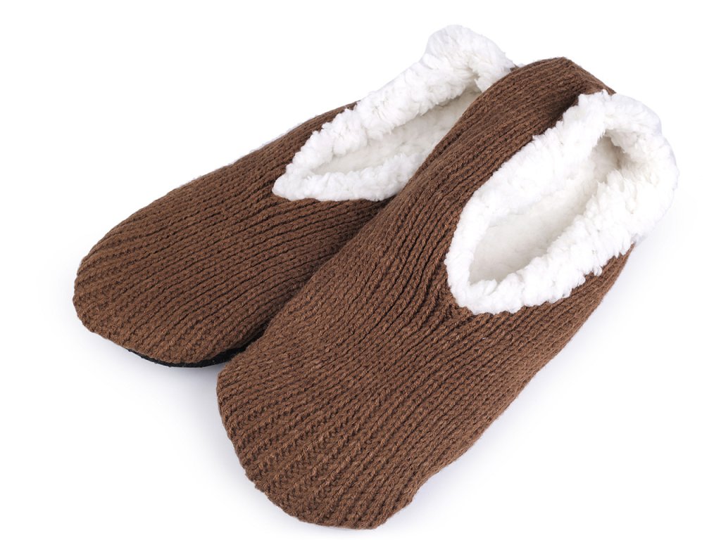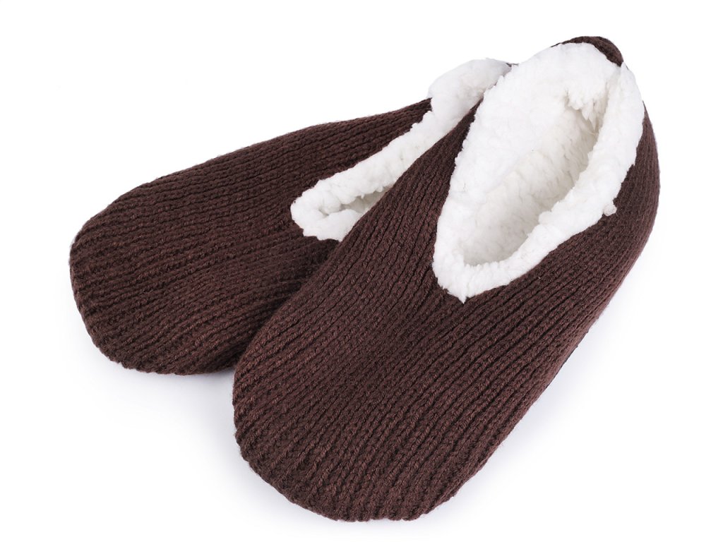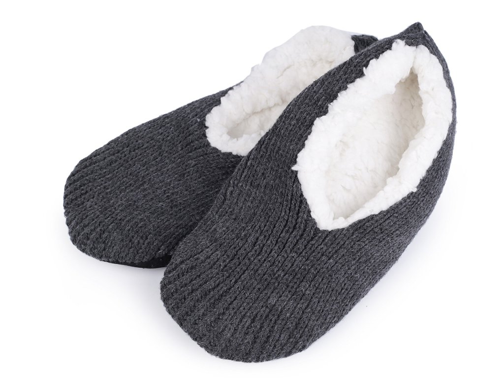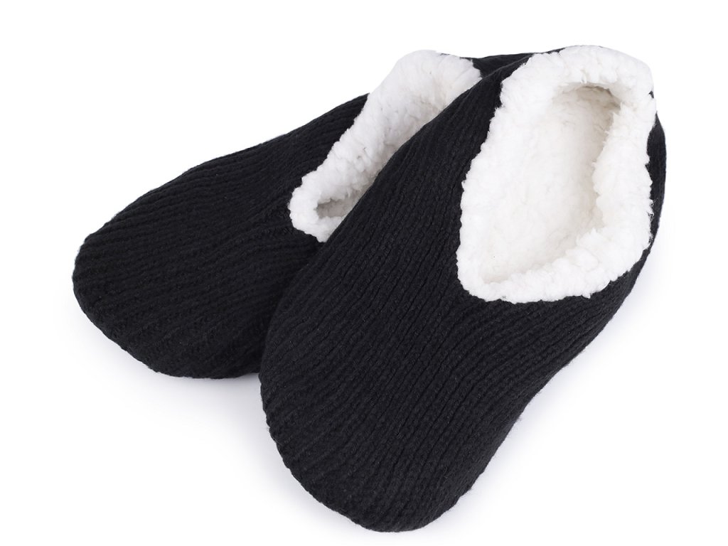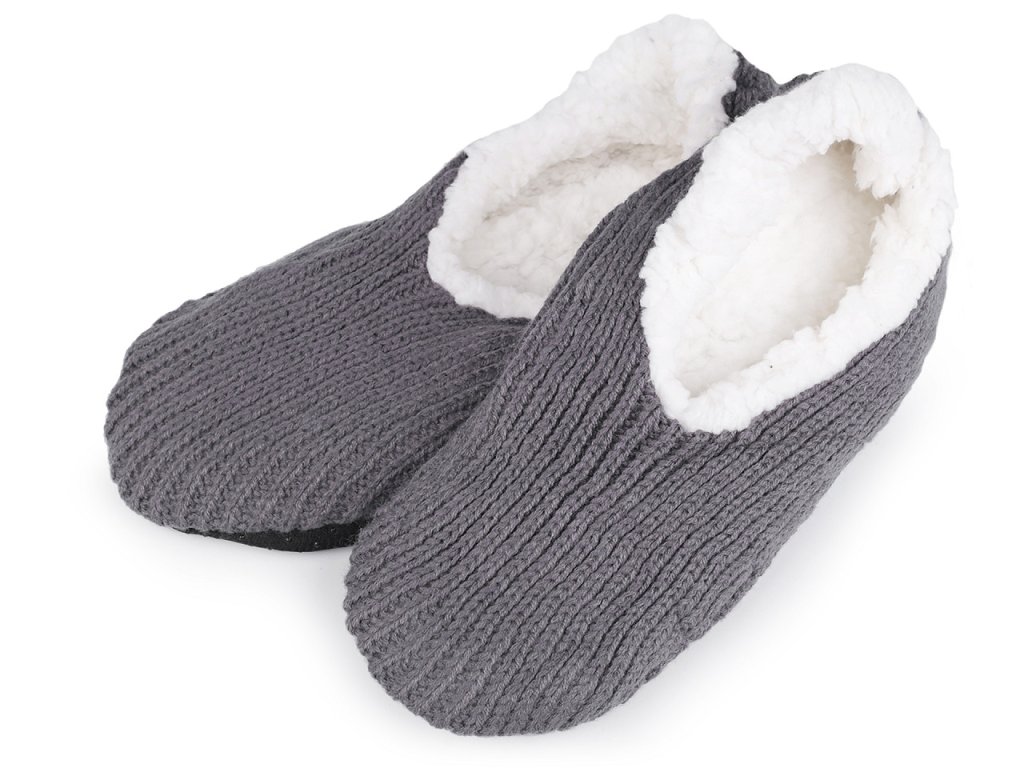 V domácí obuvi s kožíškem si užijete pravou pohodu. Z vrchní strany je pletenina , uvnitř je teplá chlupatá podšívka, která věrně imituje vlnu. Protiskluzové gumové tečky na chodidle zabrání uklouznutí.