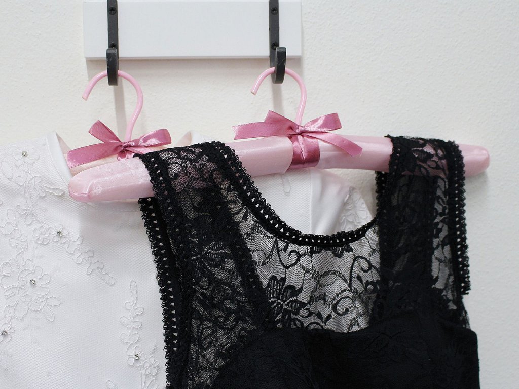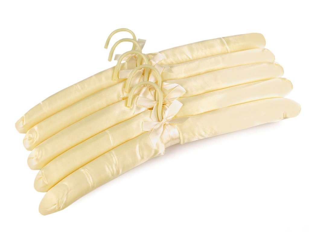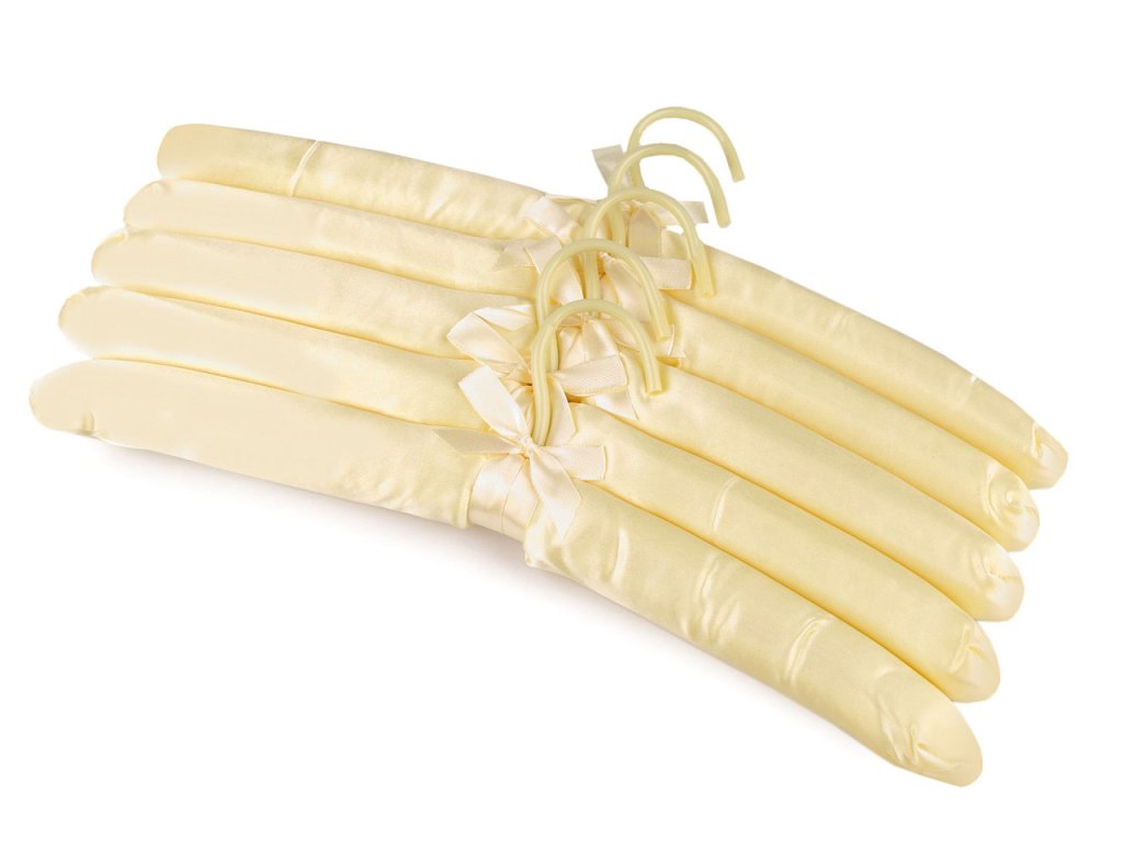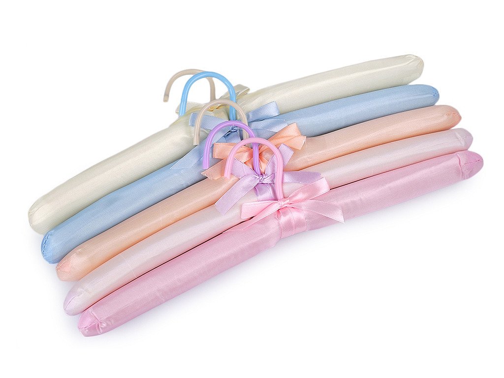 Ramínko na oděvy ocení ve své domácnosti elegantní a romantické duše. Na dotek je měkké a potažené lesklým saténem. Ramínka jsou vhodná na svatební šaty, šaty pro družičky nebo na oděvy z jemných materiálů. Háček je otočný.