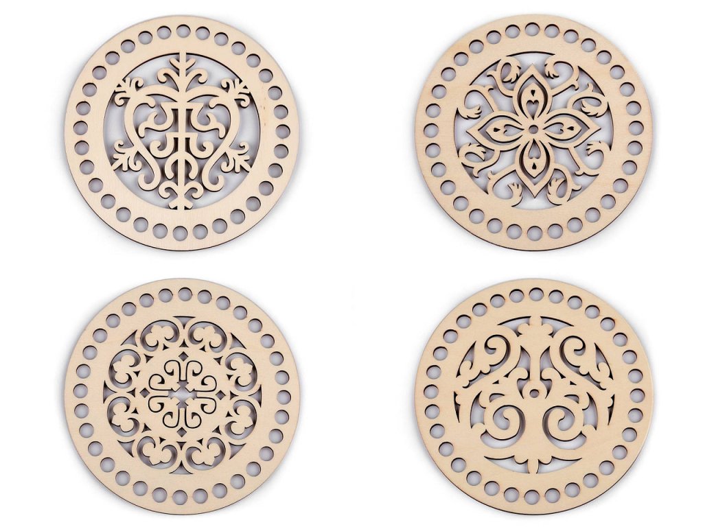 Dřevěný kruh s mandalou a velkými otvory se hodí na výrobu bytových dekorací. Je přesně vyřezaný laserem.