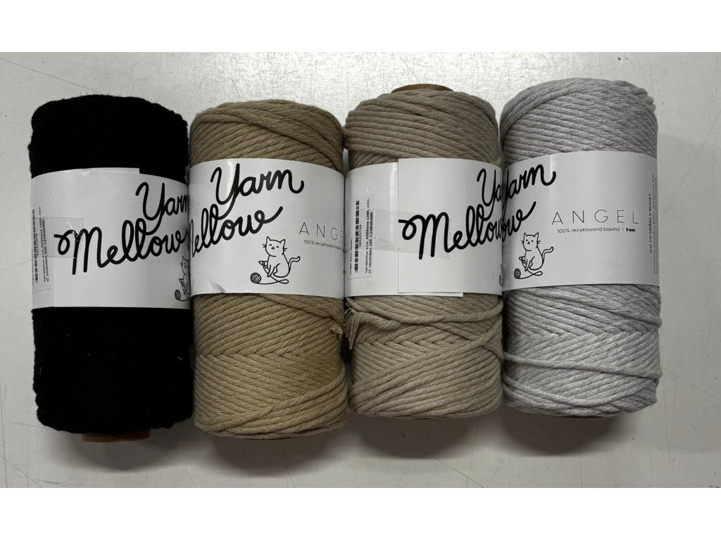 Příze Angel od značky YarnMellow je ideální na výrobu macrame dekorací. Je ze 100% recyklované bavlny a najdete ji u nás v mnoha odstínech. Dá se snadno rozčesat, hodí se tedy hlavně na tvorbu andělů, lístků i velkých nástěnných dekorací.