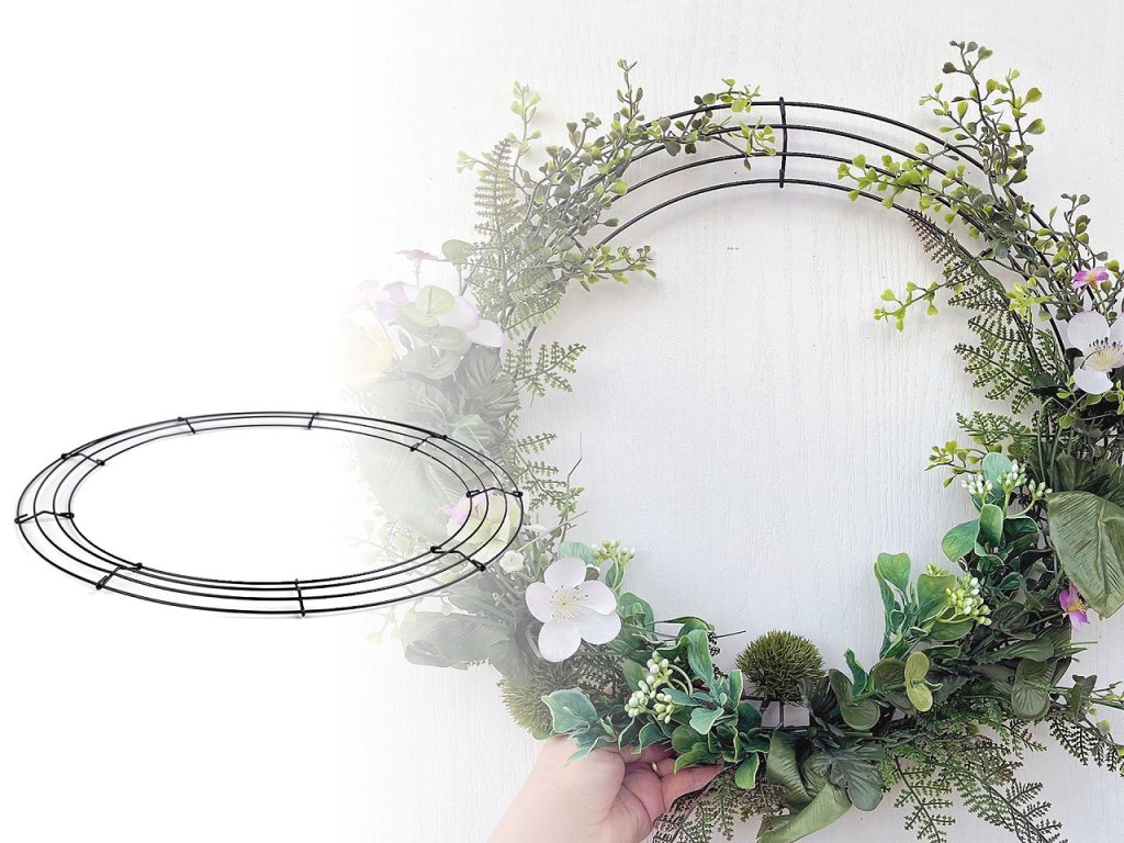 Velkou drátěnou konstrukci na výrobu věnce můžete libovolně dozdobit. Slouží pro vytvoření různých druhů věnců a dekorací na zavěšení i položení. Práce s touto konstrukcí je jednoduchá, můžete pracovat s různými látkami nebo přírodními materiály. Hodí se na výrobu jutových věnců, věnců z organzy, ale i věnečků z obilí nebo levandule. Drátěná konstrukce je výhodná na provlékání a řasení širokých stuh, výborně se k ní přivazují mašle, provázky i drátky.