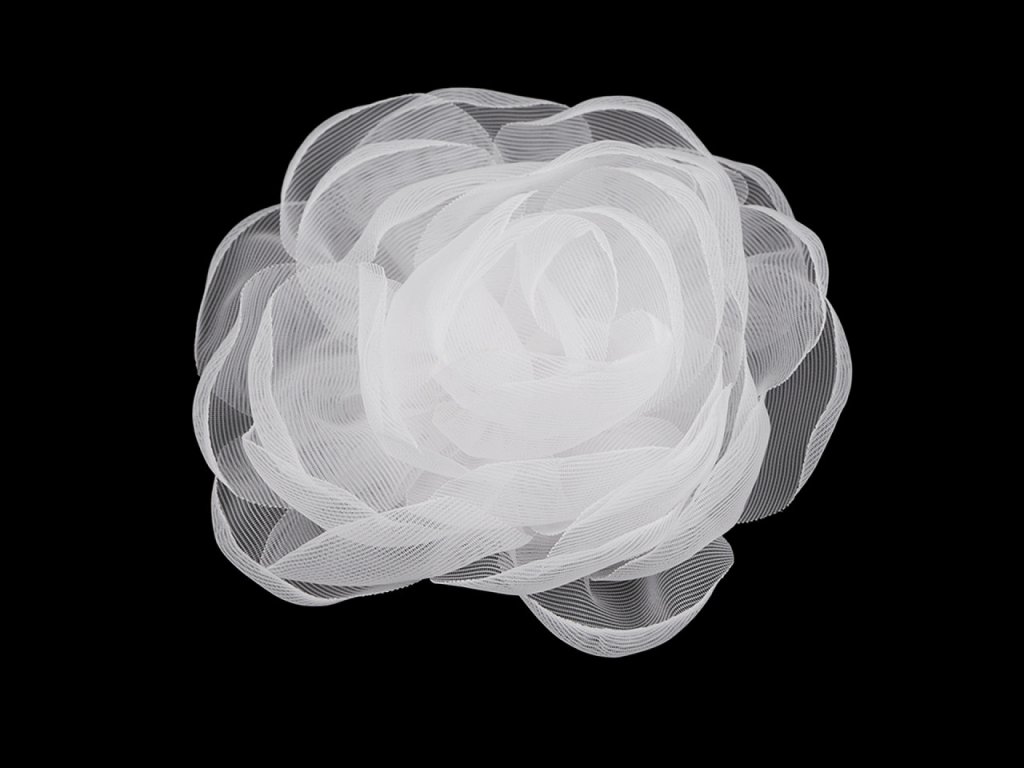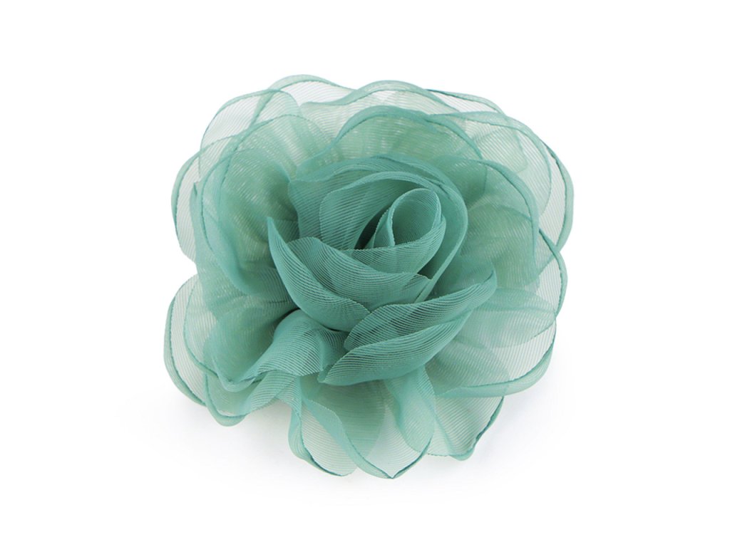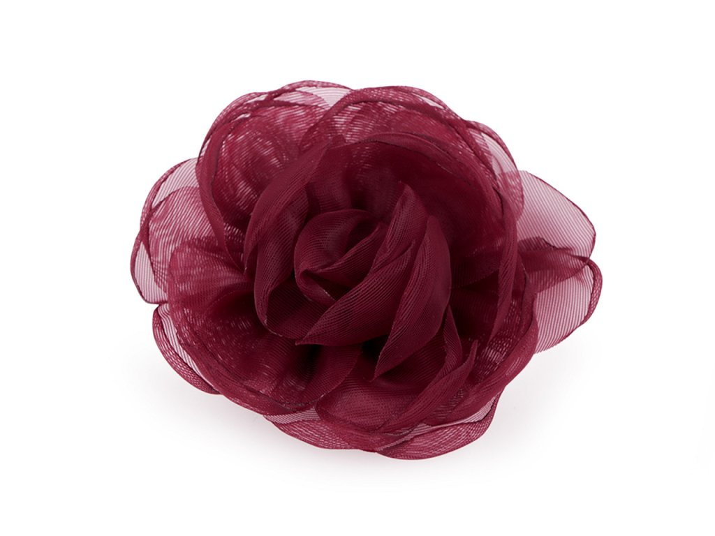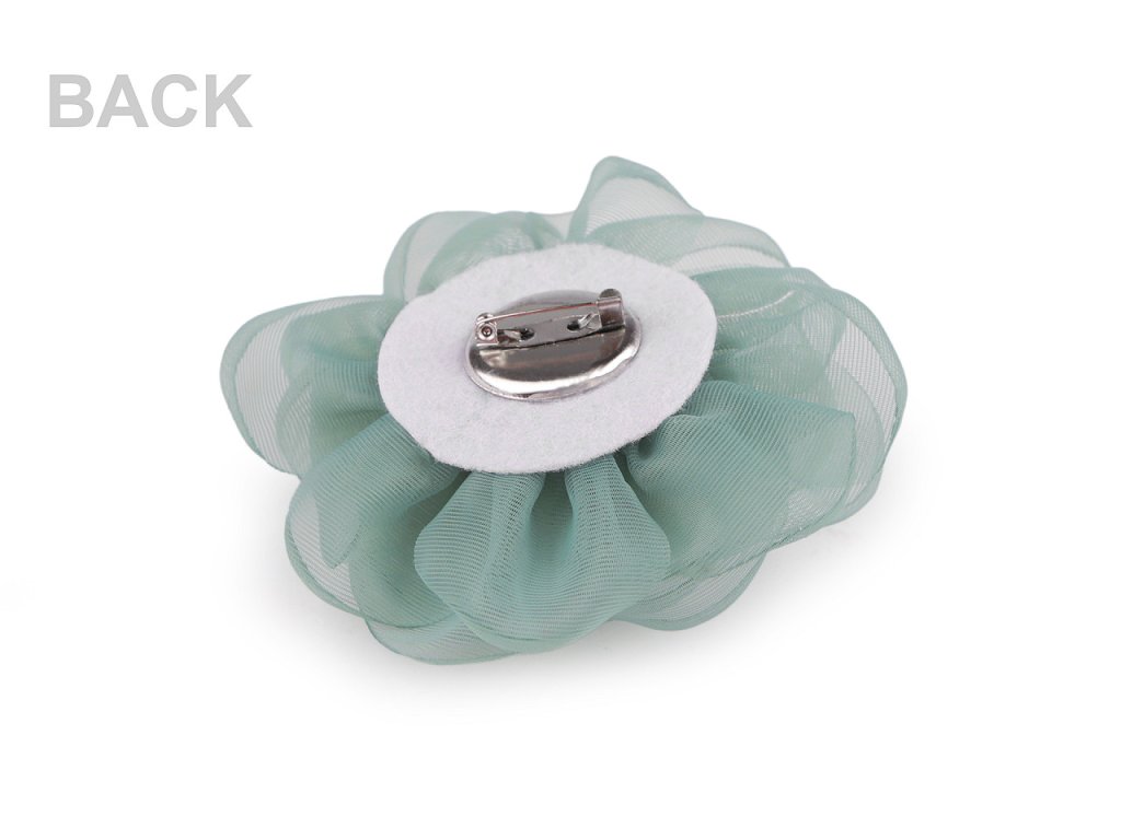 Organzová brož květu je elegantní, vzdušná a nadýchaná díky bohatým okvětním plátkům. Ve spodní části má brožový špendlík. Květem si můžete ozdobit šaty, halenku, sako, klobouk i kabelku.