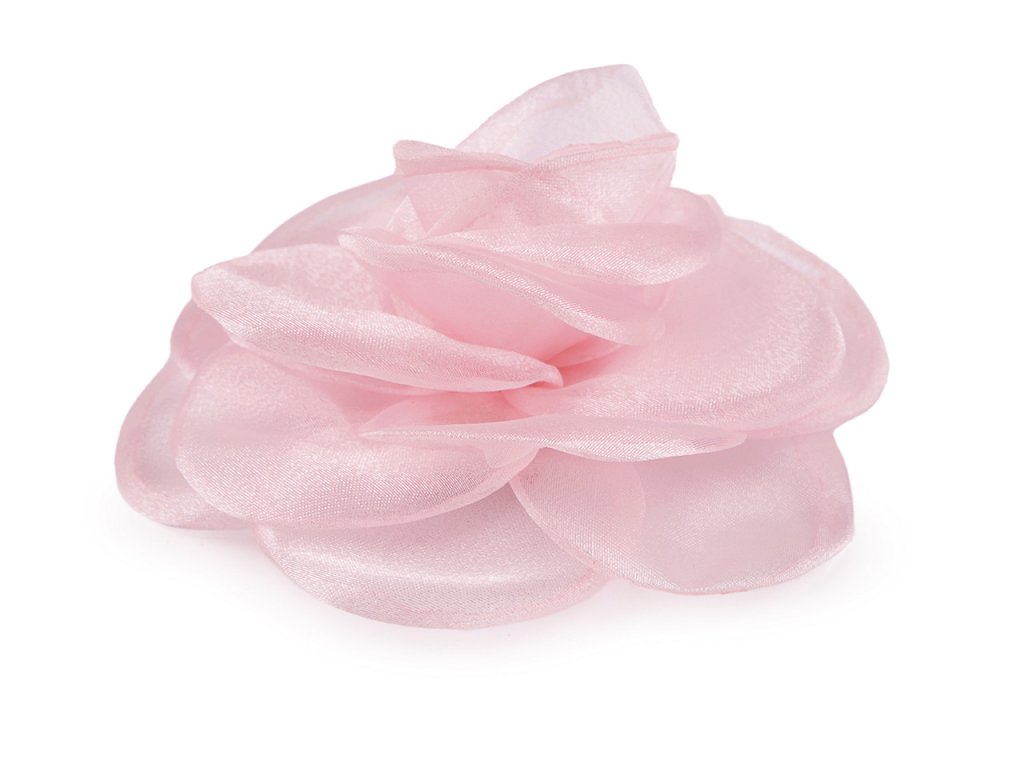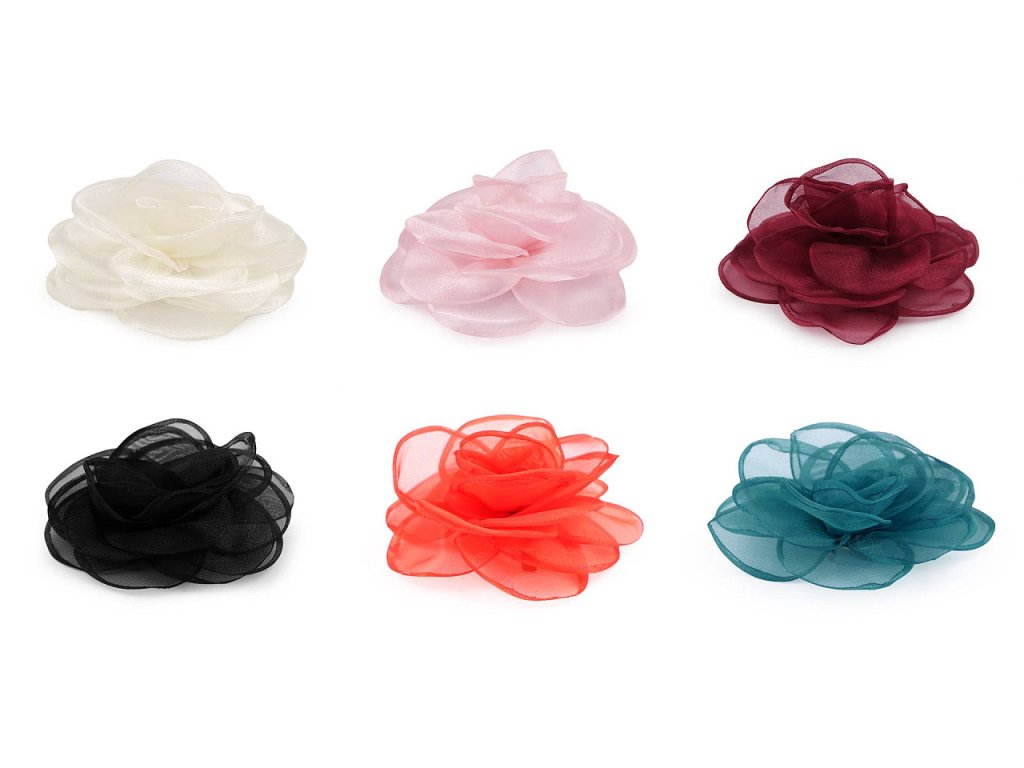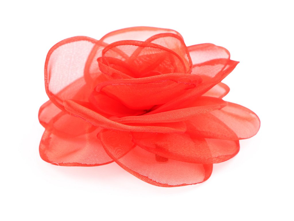 Organzová brož květu je elegantní, vzdušná a nadýchaná díky bohatým okvětním plátkům. Ve spodní části má spínací špendlík a klips, takže ji můžete připevnit jak na oděv, tak do vlasů. Květem si můžete ozdobit šaty, halenku, sako, klobouk i kabelku. Ve vlasech bude působit romanticky.