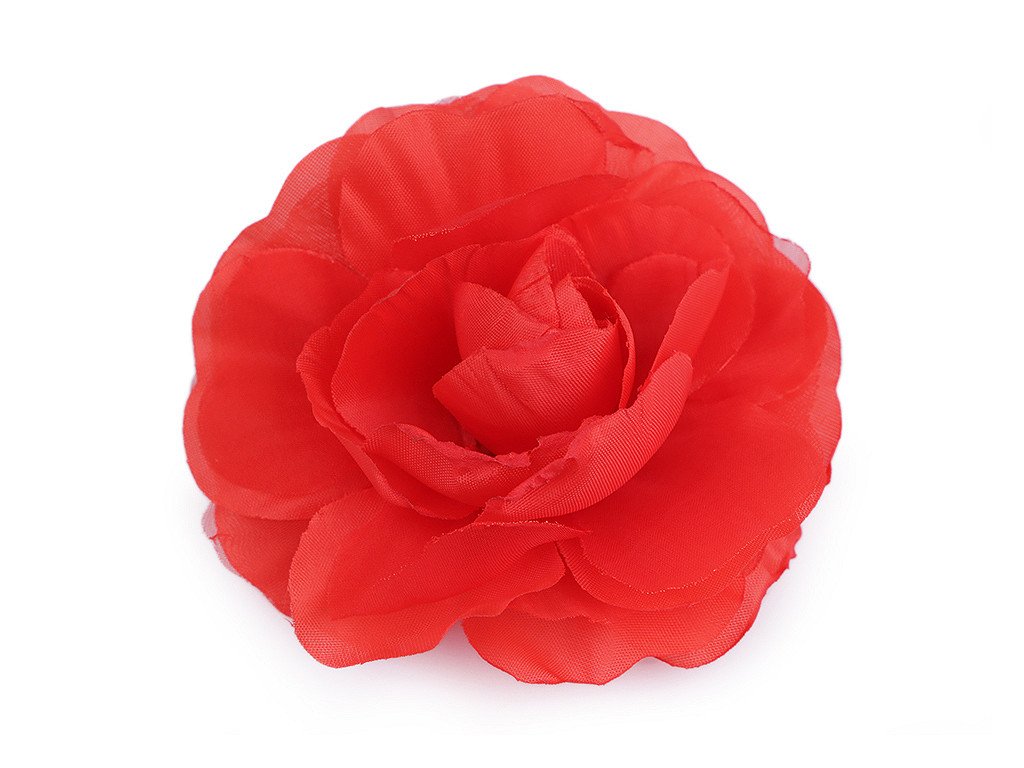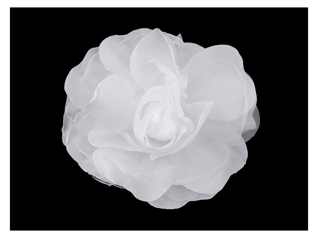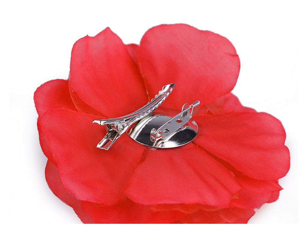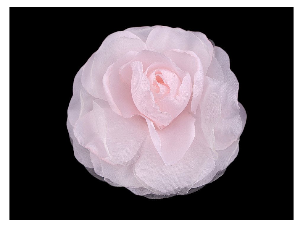 Brož ve tvaru růže je jemně nadýchaná, má krásný 3D tvar. Ve spodní části má spínací špendlík a klips, takže ji můžete připevnit jak na oděv, tak do vlasů. Brož využijete jako ozdobu na šaty, halenku, sako nebo kabelku. Ve vlasech bude působit romanticky.