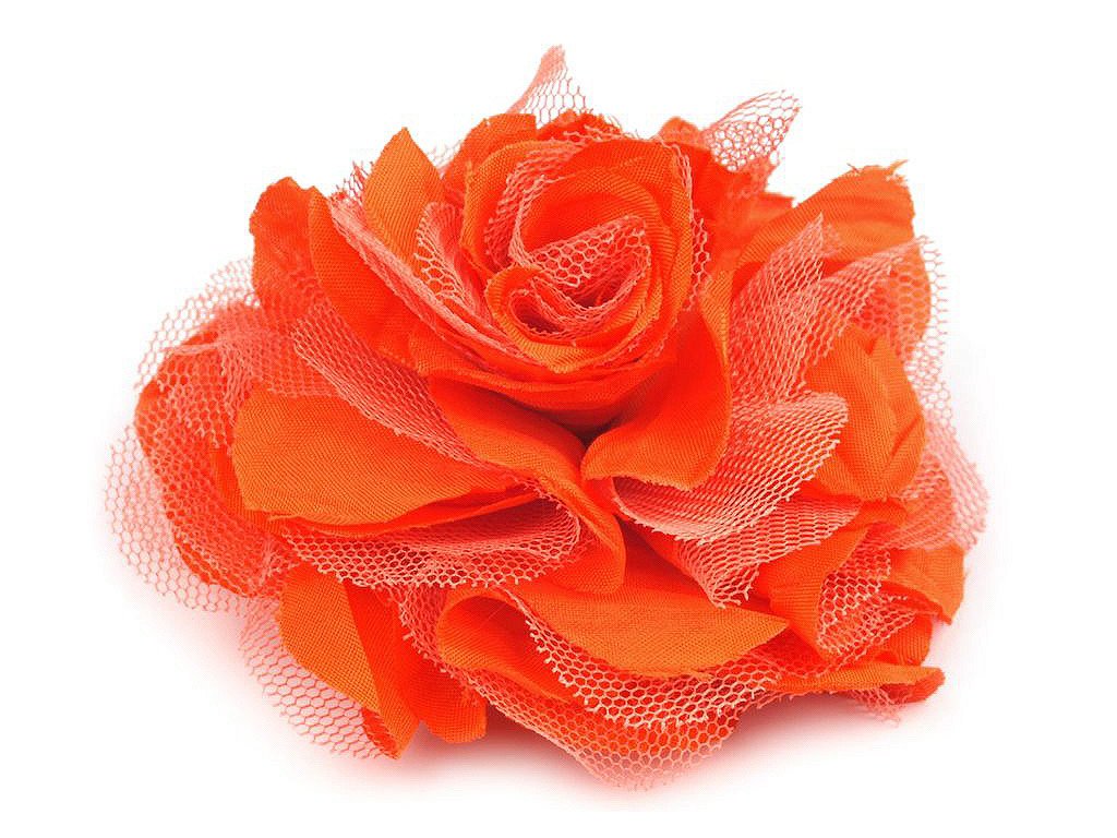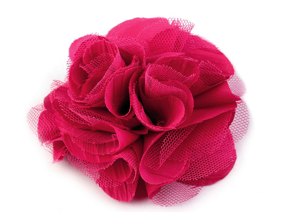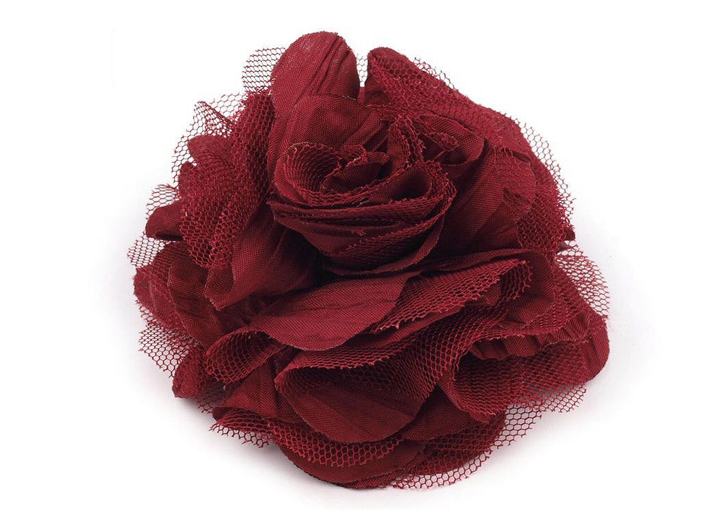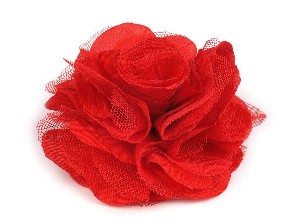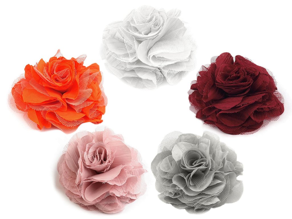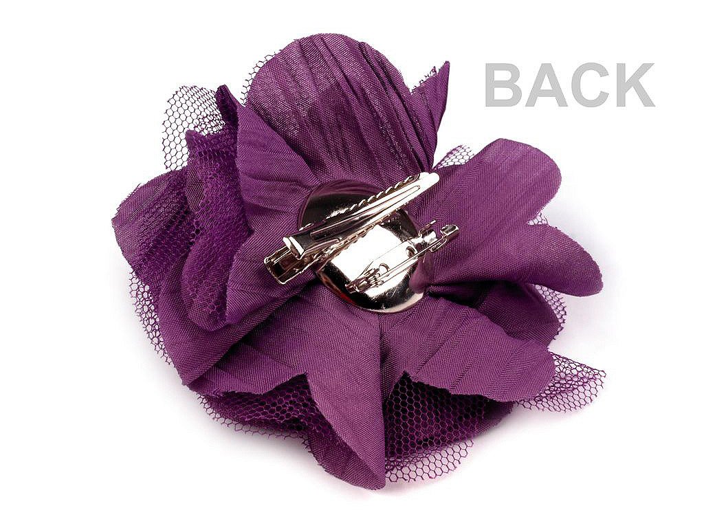 Brož ve tvaru růže je jemně nadýchaná a vyrobena z polyesteru. Ve spodní části má spínací špendlík a klips, takže ji můžete připevnit jak na oděv, tak do vlasů.Brož využijete jako ozdobu na šaty, halenku, sako nebo kabelku. Ve vlasech bude působit romanicky.