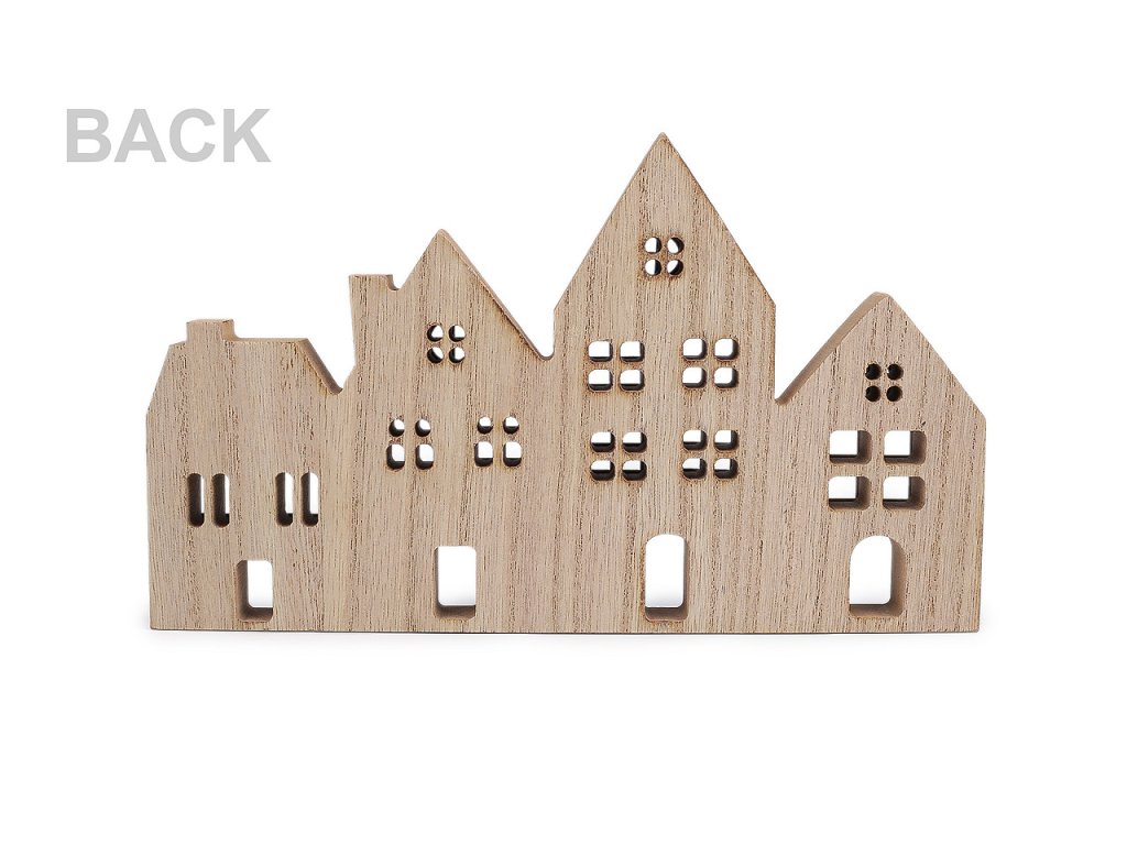 Dřevěné dekorační domečky vyniknou jako stylová zimní dekorace. Můžete je umístit na krbovou římsu, okenní parapet, poličku nebo je dát jako dominantu sváteční tabule. Mají zajímavě zpracované detaily v podobě malby a třpytivých oken.