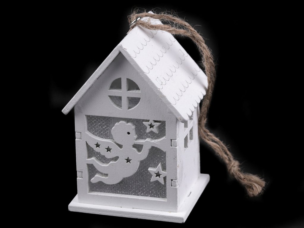 Dřevěný svítící domeček rozzáří každý interiér. Má poutavě zpracované detaily a svítí studeným světlem. Díky poutku ho můžete pověsit na stromeček nebo na dekorační věnce.