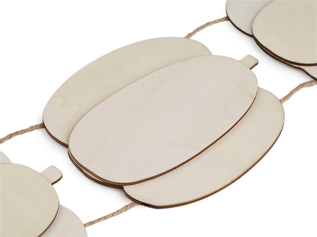 Závěs z dřevěných výřezů dýní působivě vynikne jako podzimní dekorace na zdi, dveřích i v oknech. Je vyrobený z kvalitní nelakované překližky, která je ideální pro další úpravy. Povrch je hladký, snadno jej můžete dekorovat podle vlastní fantazie. Můžete použít barvy, laky, třpytky nebo jiné dekorační techniky k vytvoření jedinečného doplňku. Díky praktickému provázku je závěs připravený k zavěšení. Je krásný i ve své přírodní podobě, skvěle se hodí na Halloween či podzimní výzdobu, ale také jako zajímavý prvek pro celoroční vystavení.