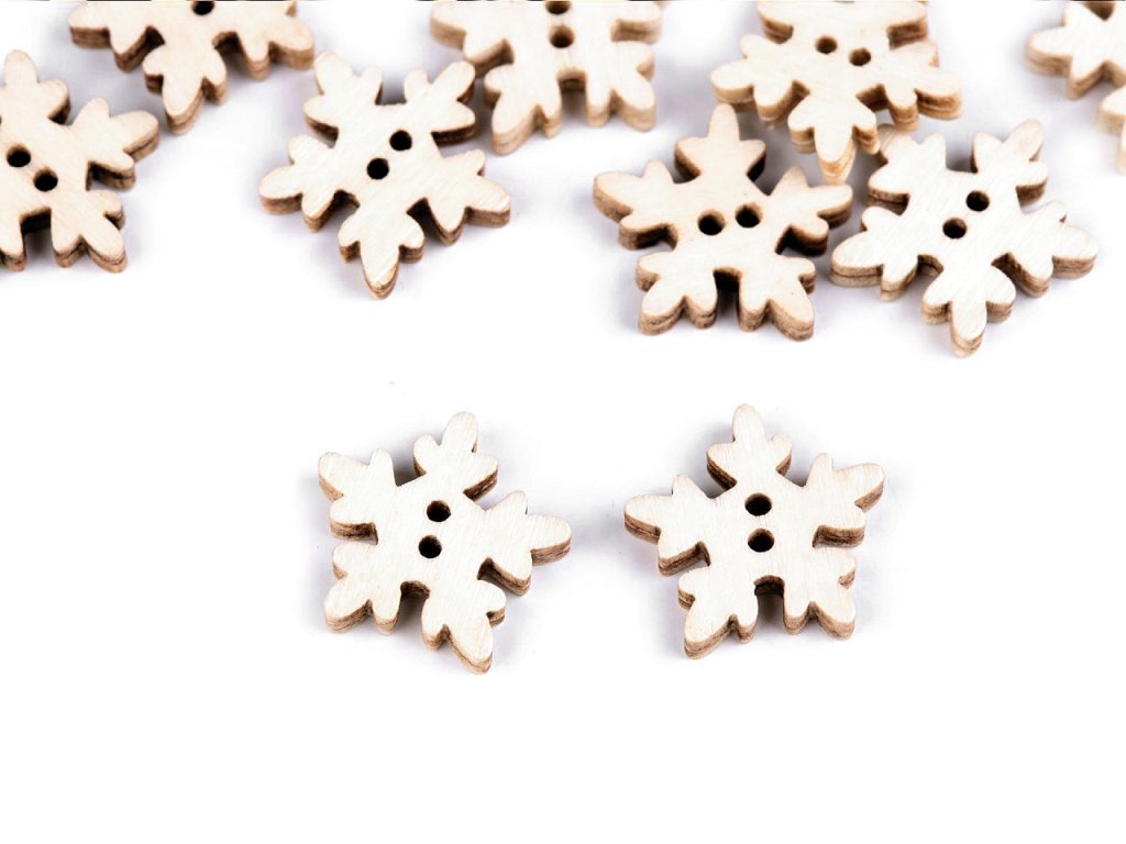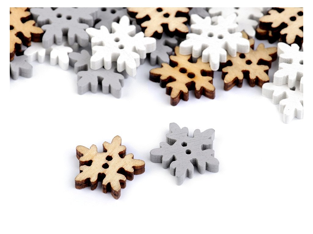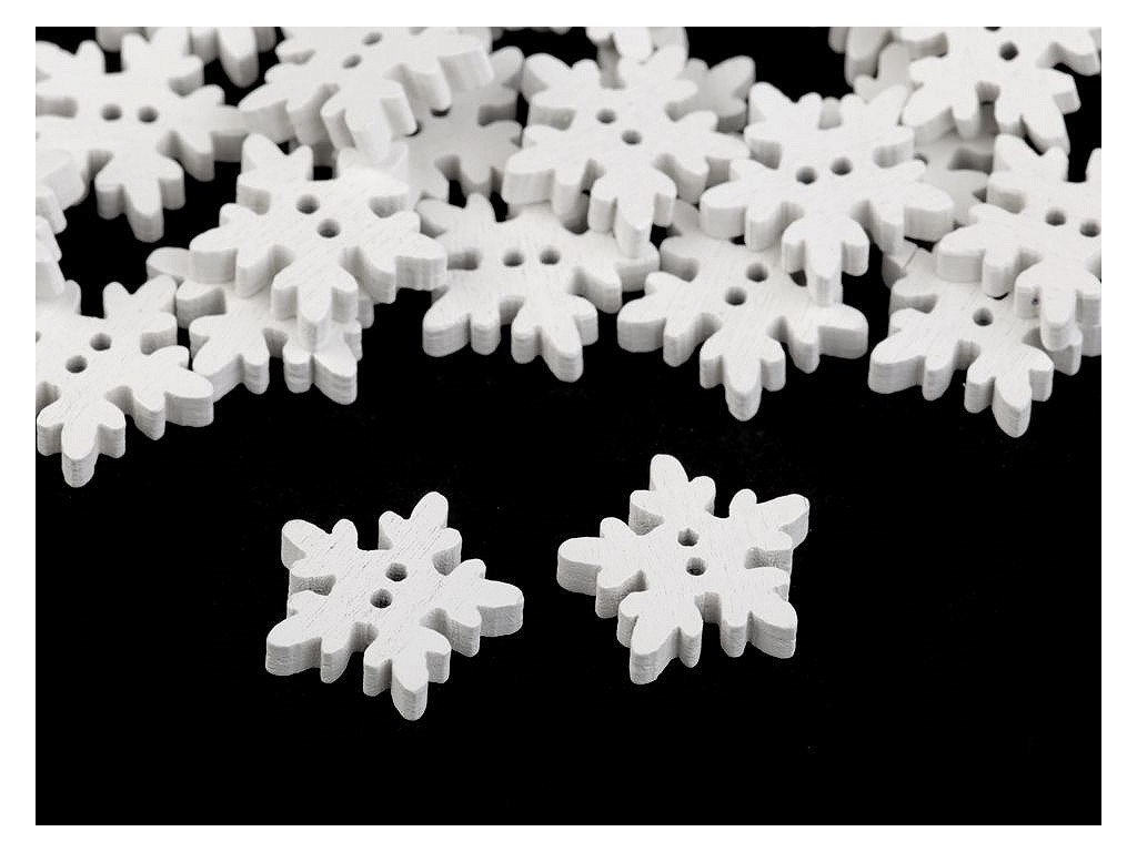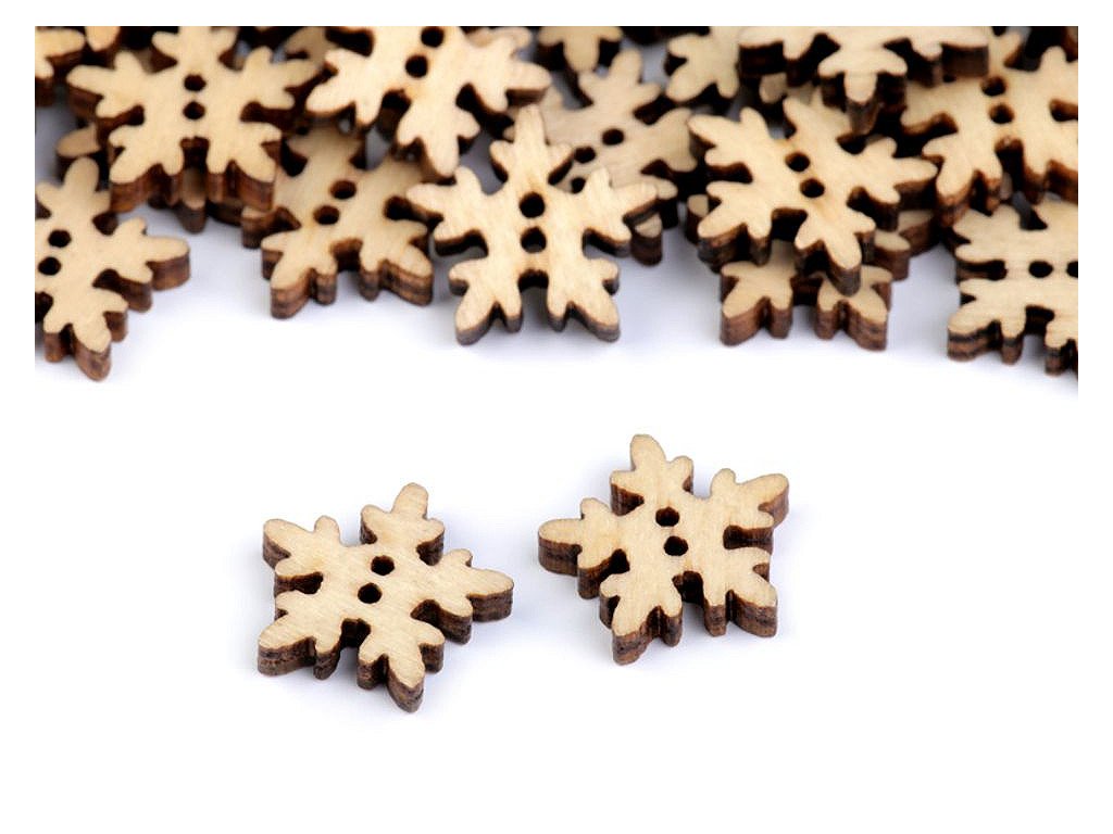Dřevěné vločky jsou působivou zimní dekorací. Jejich povrch je lakovaný.
