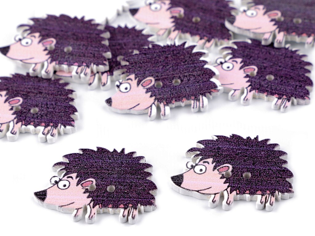 Dřevěný dekorační knoflík zvířátka - pes, ježek, tygr