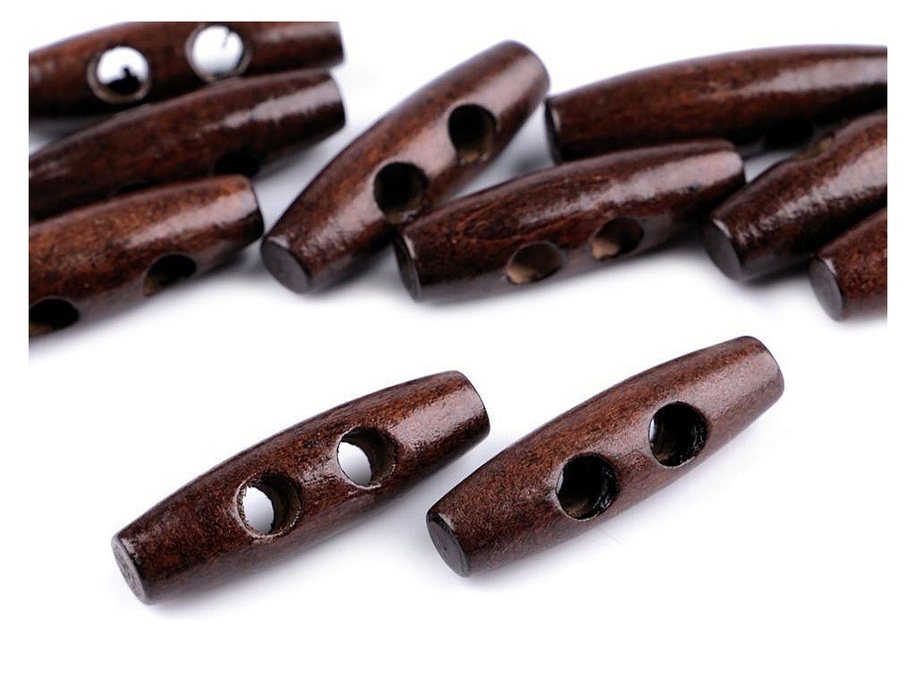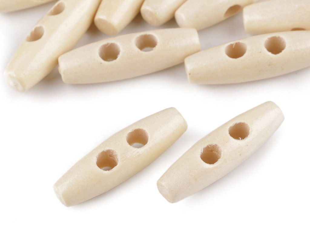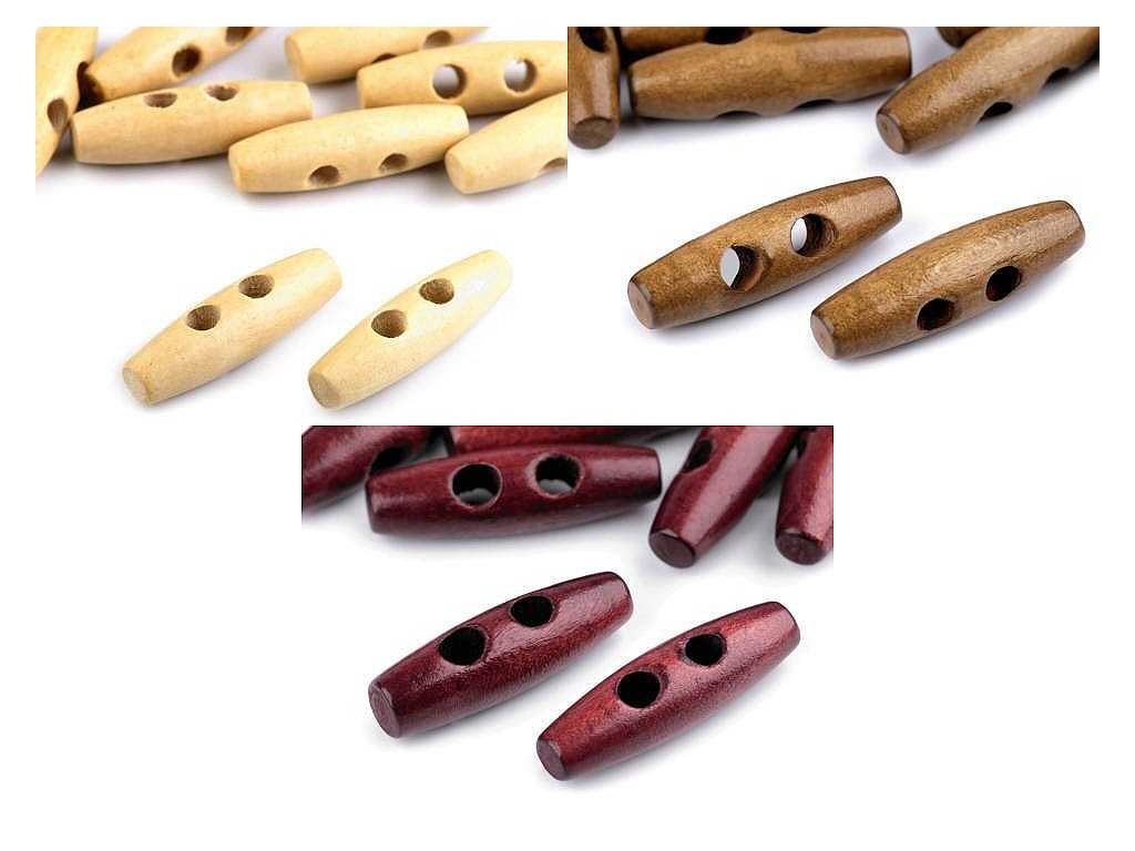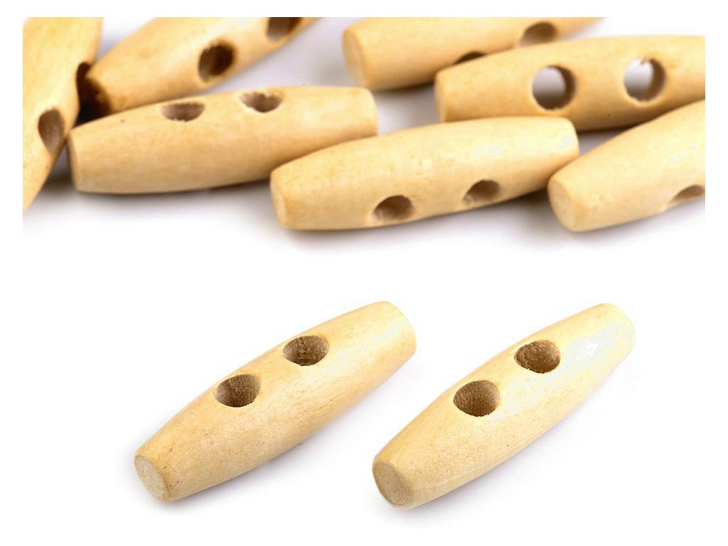 Dřevěný knoflík přírodní barvy vás zaujme svým originálním tvarem. Je vhodným doplňkem zimních kabátů či svetrů. Průměr dírky je přibližně 6 mm.