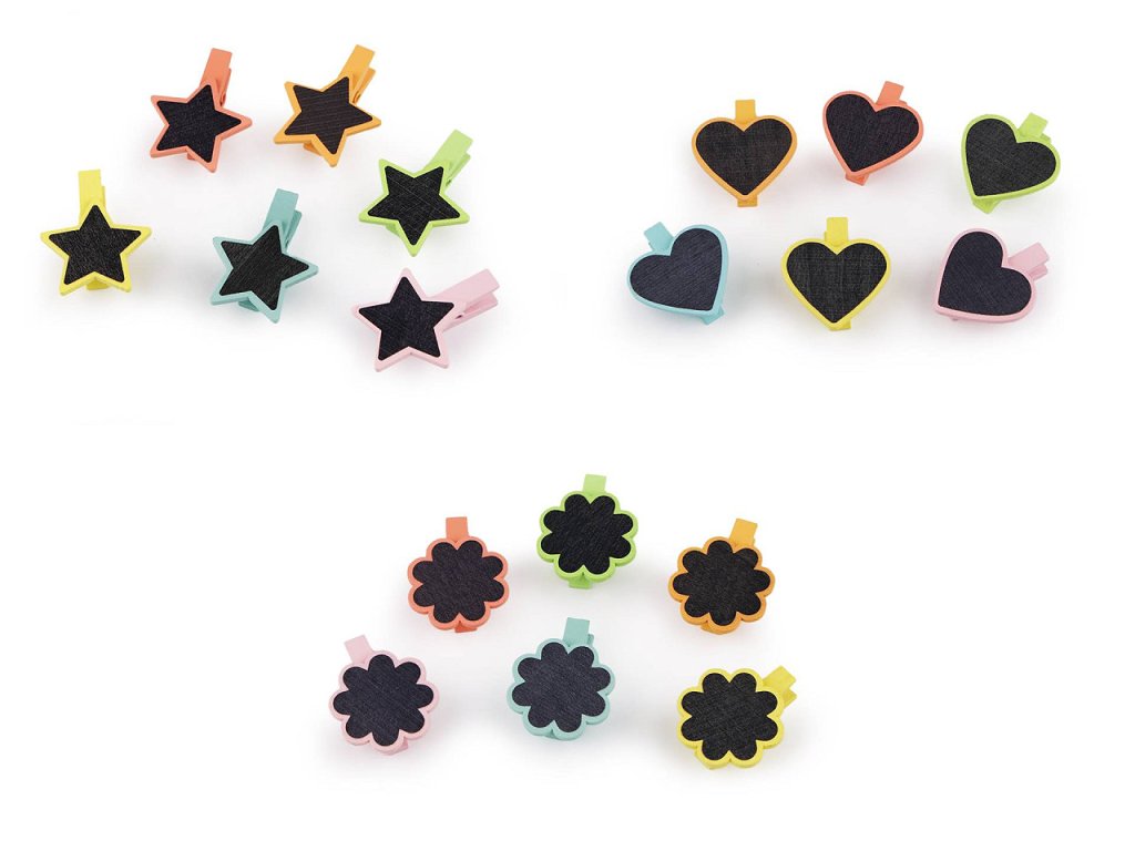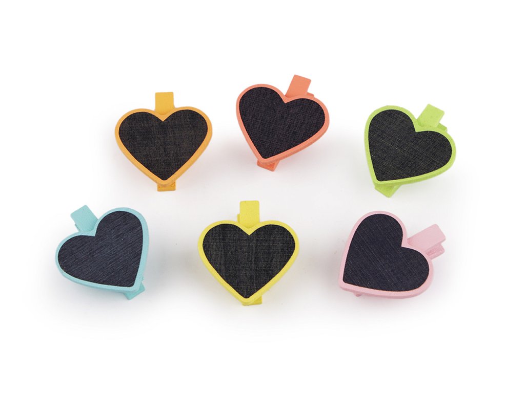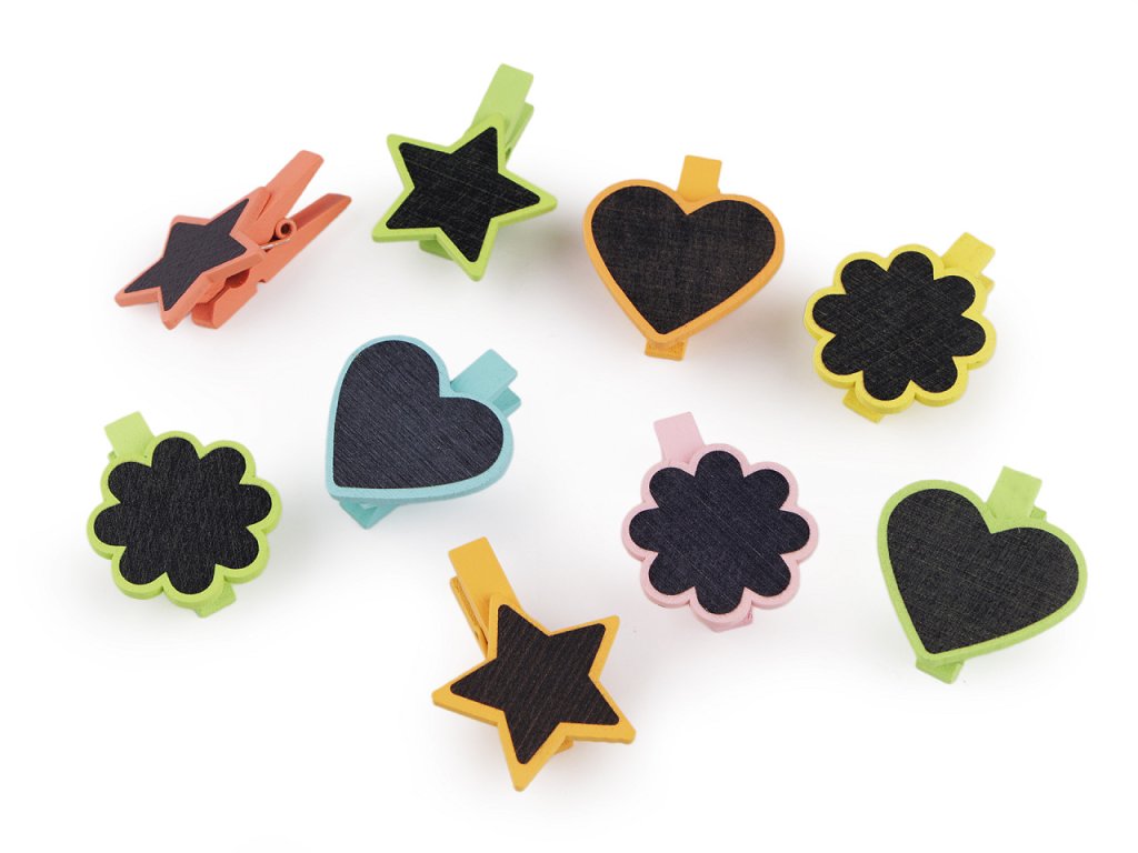 Dřevěné mini kolíčky s tabulkou využijete na různé dekorace, jmenovky, k aranžování, k balení dárků i k uchycení fotografií na provázek. Tabulka na kolíčku je ideální pro psaní krátkých vzkazů nebo popisů. Dá se na ni psát klasickou křídou, která jde umýt.