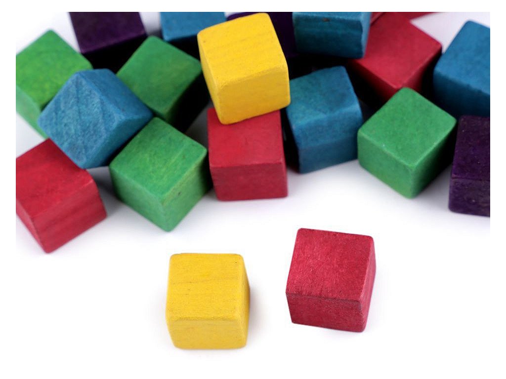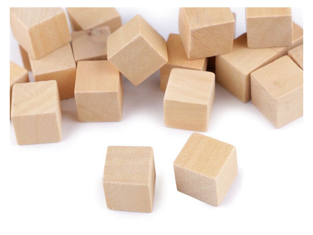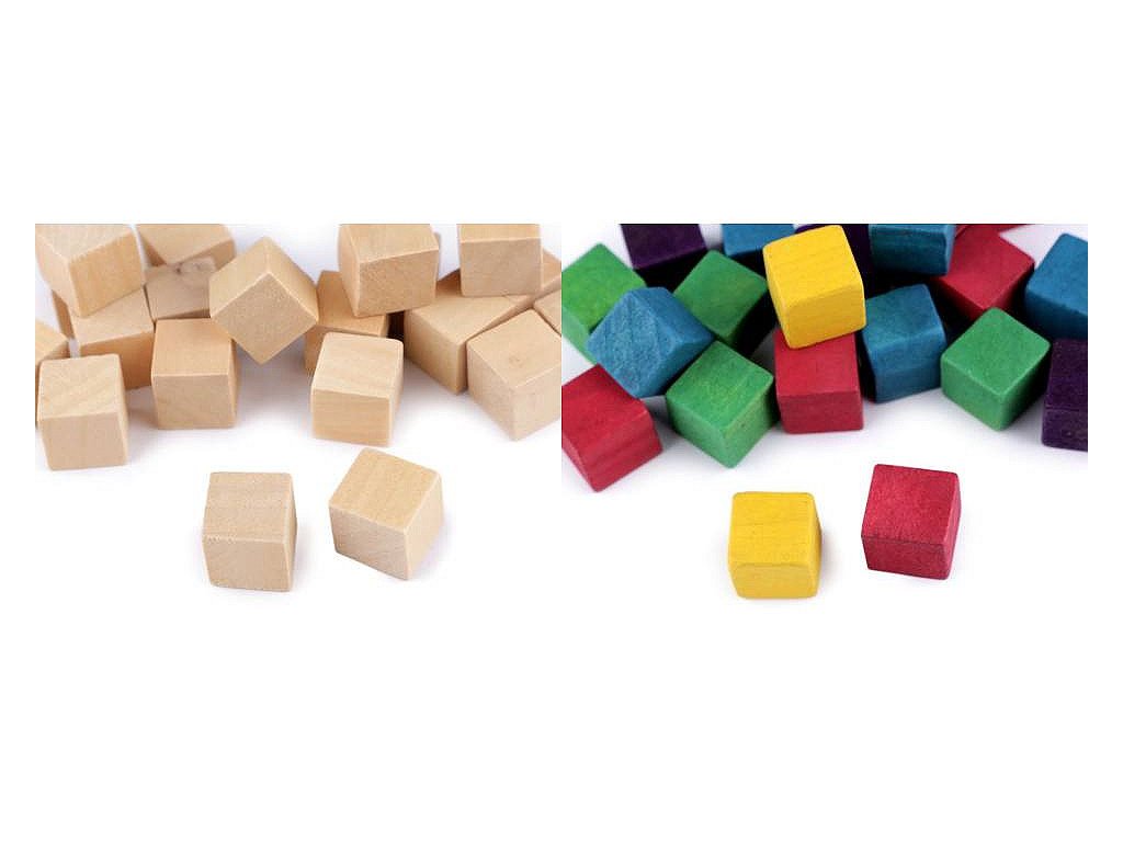 Malé dřevěné kostky ke kreativnímu tvoření.
