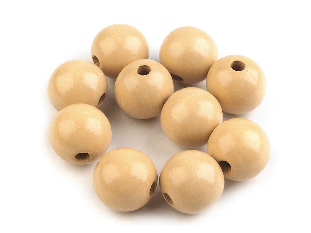 Velké dřevěné korálky využijete k výrobě uch na tašky. Jsou povrchově lakované.