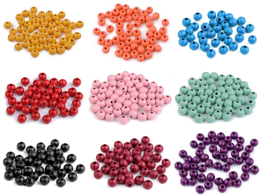 Barevné dřevěné korálky jsou velice oblíbené. Využijete je pro výrobu náhrdelníků, náramků i náušnic.