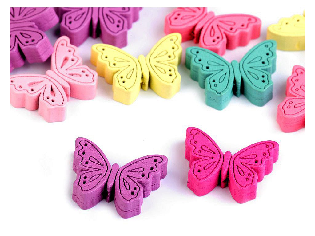 Korálky s motivem motýla mají jednostranný potisk, ostatní korálky jsou oboustranné.