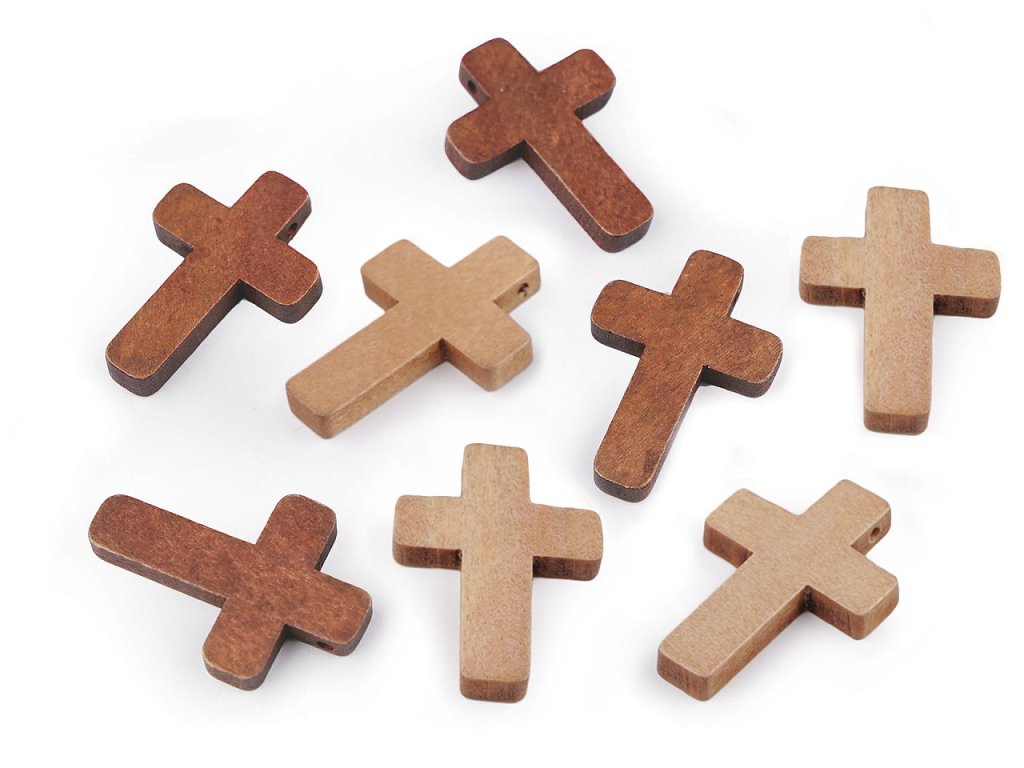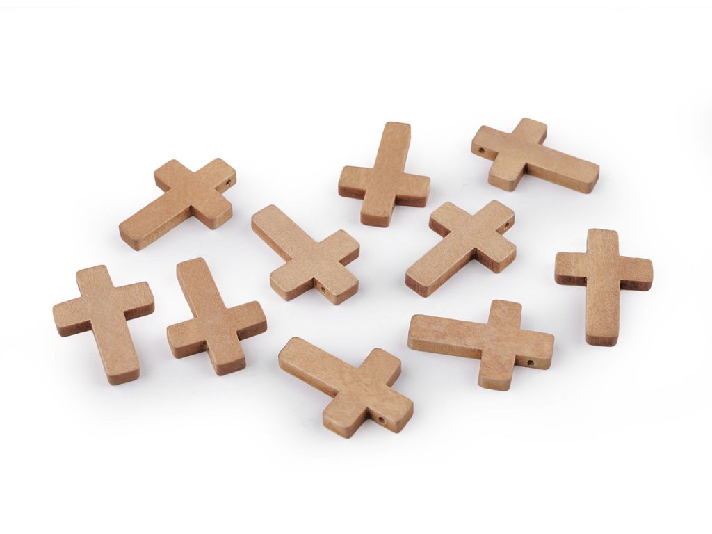 Dřevěné korálky ve tvaru kříže můžete použít jako přívěsek. Jejich velikou výhodou je lehký materiál. Dají se skvěle kombinovat s dalšími korálky do náhrdelníků, ale také do různých přívěsků ke klíčům apod. Své využití najdou i na výrobu růženců. Dají se nalepit i na přání apod.