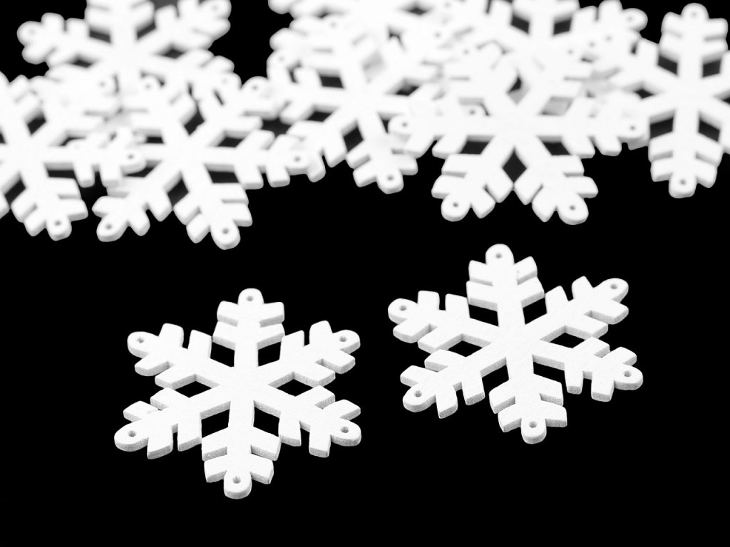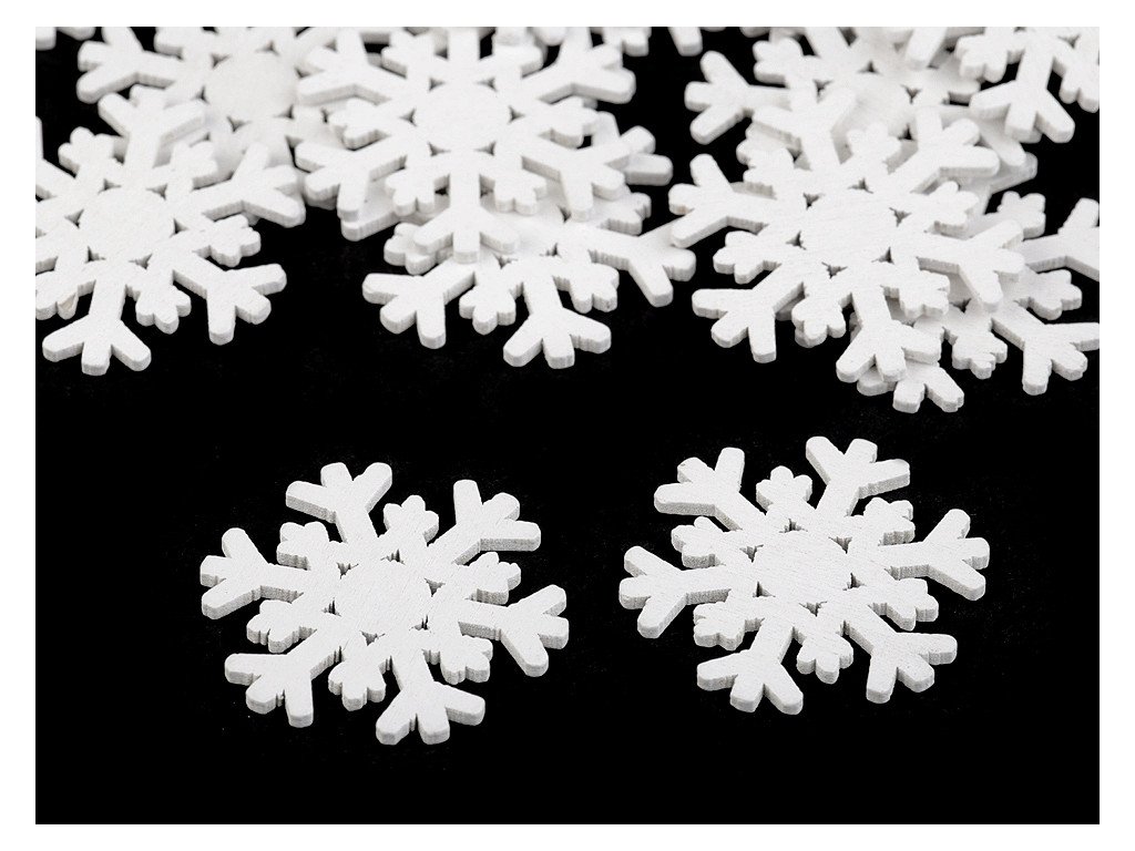 Dřevěné vločky jsou působivou zimní dekorací. Jejich povrch je lakovaný.