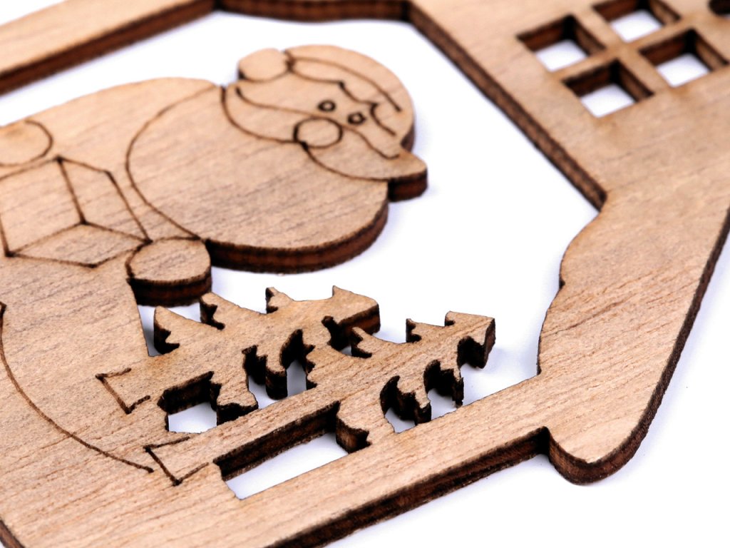 Dřevěné vyřezávané ozdoby vyniknou na vánočním stromečku, věnci i v oknech. Skrz dírku v horní části můžete provléct šňůrku nebo silon. Jsou vhodné i k nalepení, třeba na krabičky.
