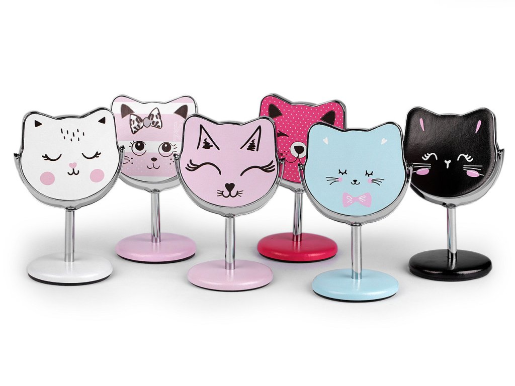 Stolní kosmetické zrcátko s designem kočky postavíte na stůl i parapet okna, kde je denní světlo nejlepší. Hodí se pro kontrolu a opravu make-upu, úpravu obočí apod. Úhel sklonu si můžete nastavit bez omezení. Má kvalitní zpracování z eko kůže.