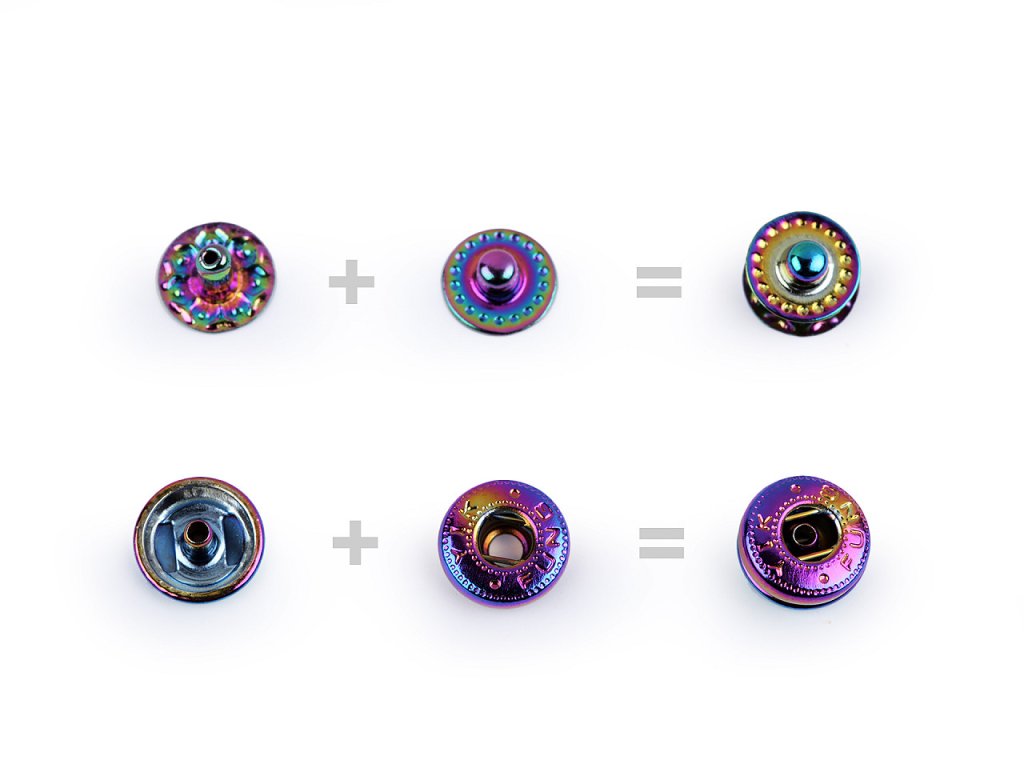Kovové druky Ø10 mm na středně silné látky, duhové