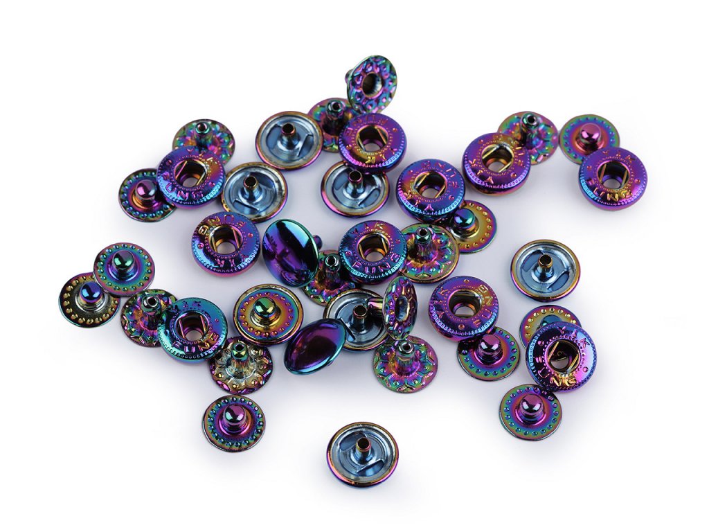 Knoflíky stiskací s pérkem Ø10 mm na středně silné látky, duhové