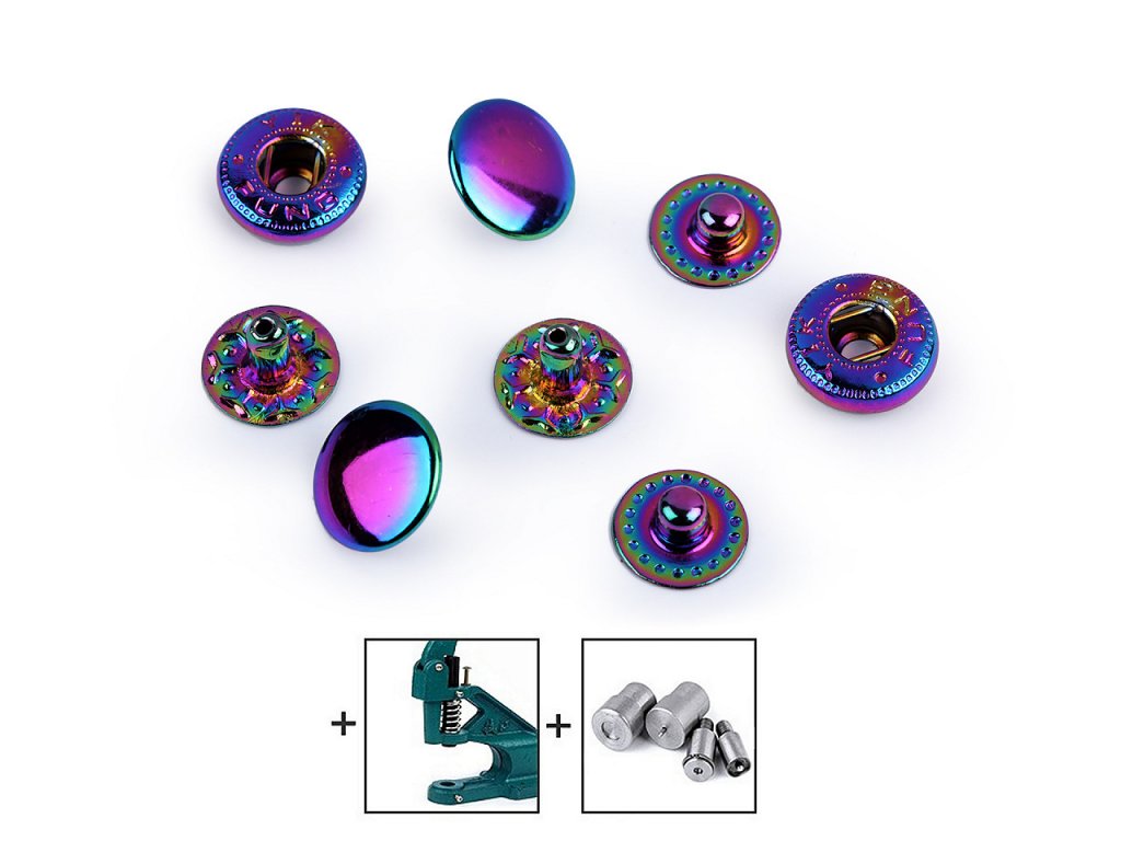 Kovové druky zdobí efektní holografický povrch, který hází zajímavé odstíny. Využijete je převážně na koženou galanterii, tašky, kabelky apod. Jsou určené ke spojování středně silných látek o tloušťce 0,5 - 1,5 mm.