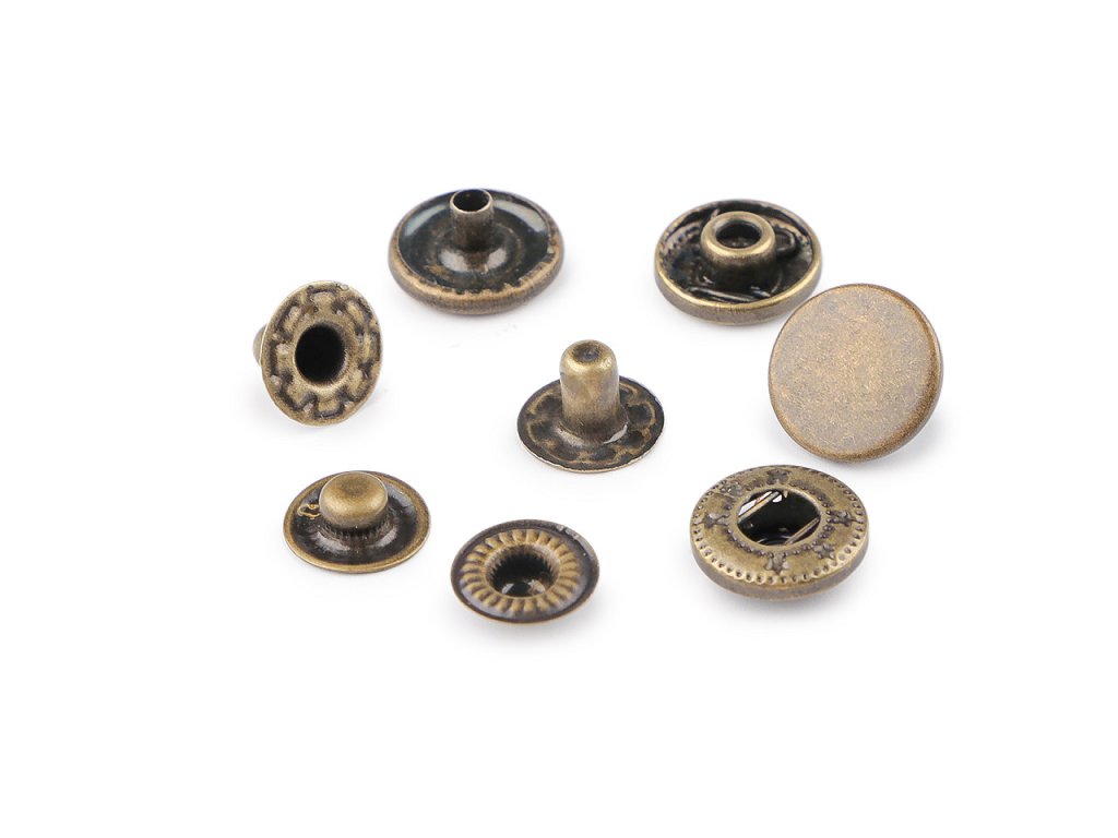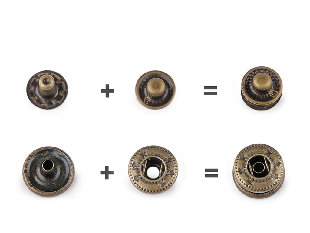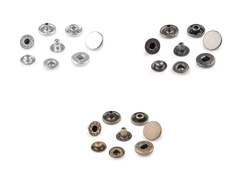 Kovové druky z nerezové oceli využijete jako zapínání na oděvy i doplňky (sportovní bundy, vesty, nepromokavé kabáty, tašky, batohy apod.). Nýtování se provádí pistonem a lisem, který je pod kódem 070241 nebo 790770.