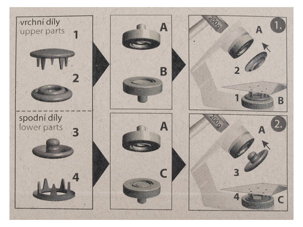 Knoflíky se používají ke spojování jemných a poddajných druhů látek - froté, úplet, košilovina aj. Nýtování se provádí mini lisem, který je součástí balení.