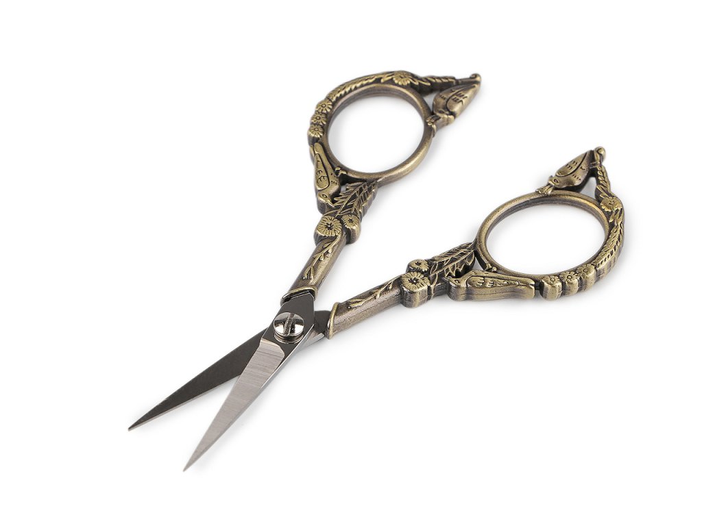 Celokovové nůžky na první pohled upoutají pozornost zdobenou vintage rukojetí. Díky své malé velikosti jsou vhodné na pečlivé stříhání drobných věcí a detailů. Využijete je při vyšívání, stříhání či vystřihování papíru apod.