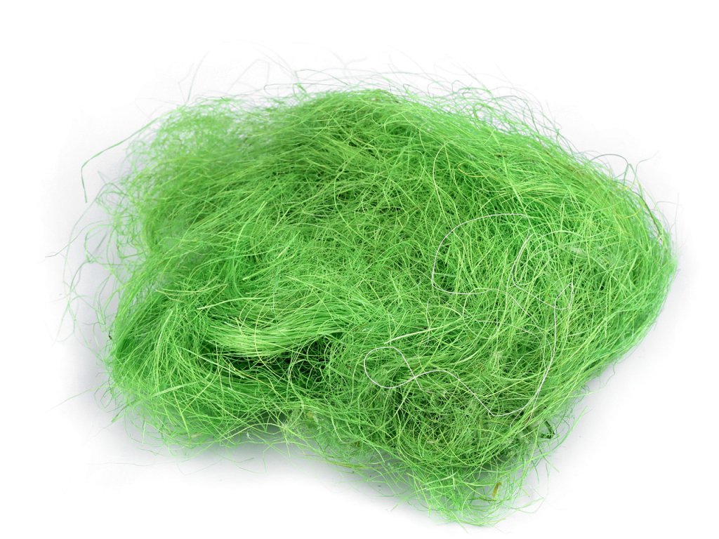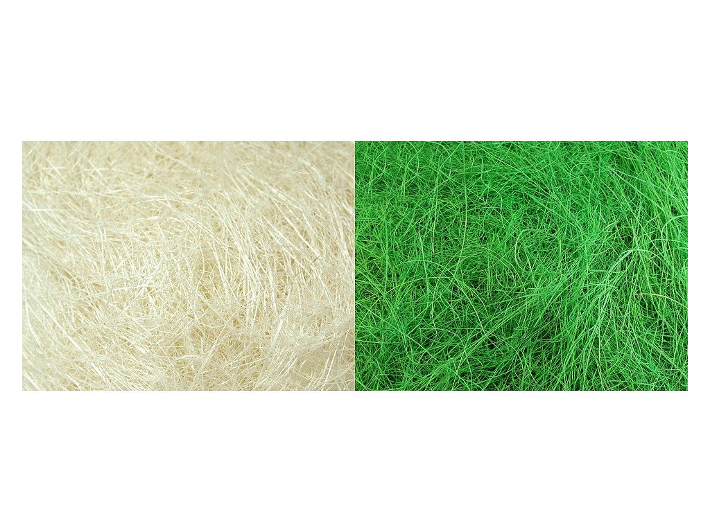 Sisalové vlákno se používá především při tvorbě různých dekorací.Použití: Sisalové vlásky urovnejte a omotejte kolem dekorovaného předmětu. Ozdobit tak můžete například talíře či stojany na svíce při svatební hostině. Sisalové vlákno lze použít také jako výplňový materiál do květinových aranžmá, ať už se jedná o výplň květináčů či ozdobu řezaných květin. Využijete ho k dekoracím během celého roku. O Velikonocích poslouží jako podklad velikonočních vajíček, na podzim na něj můžete položit ozdobné dýně.