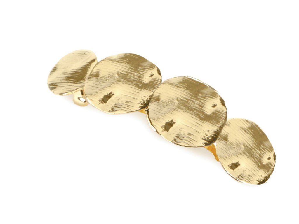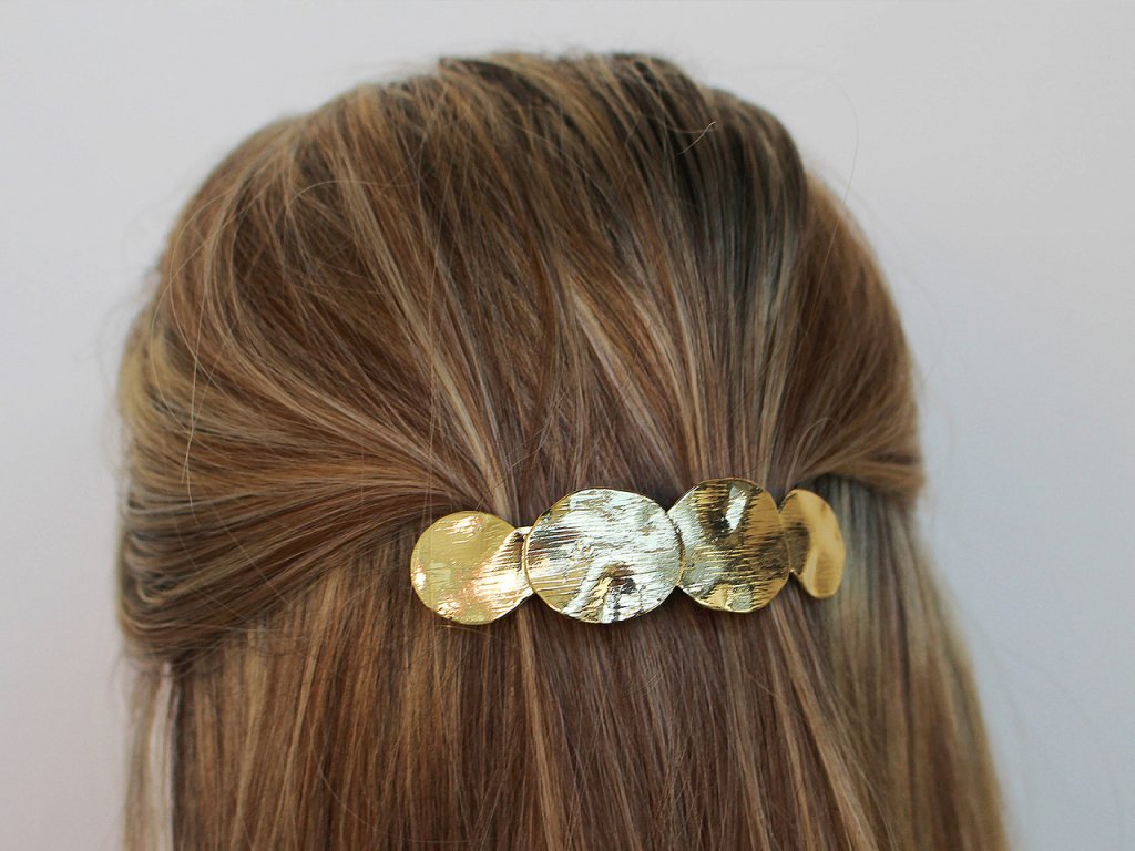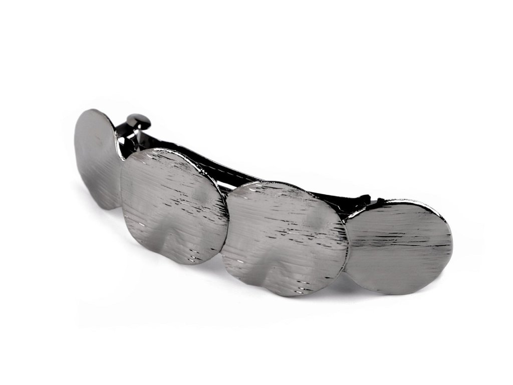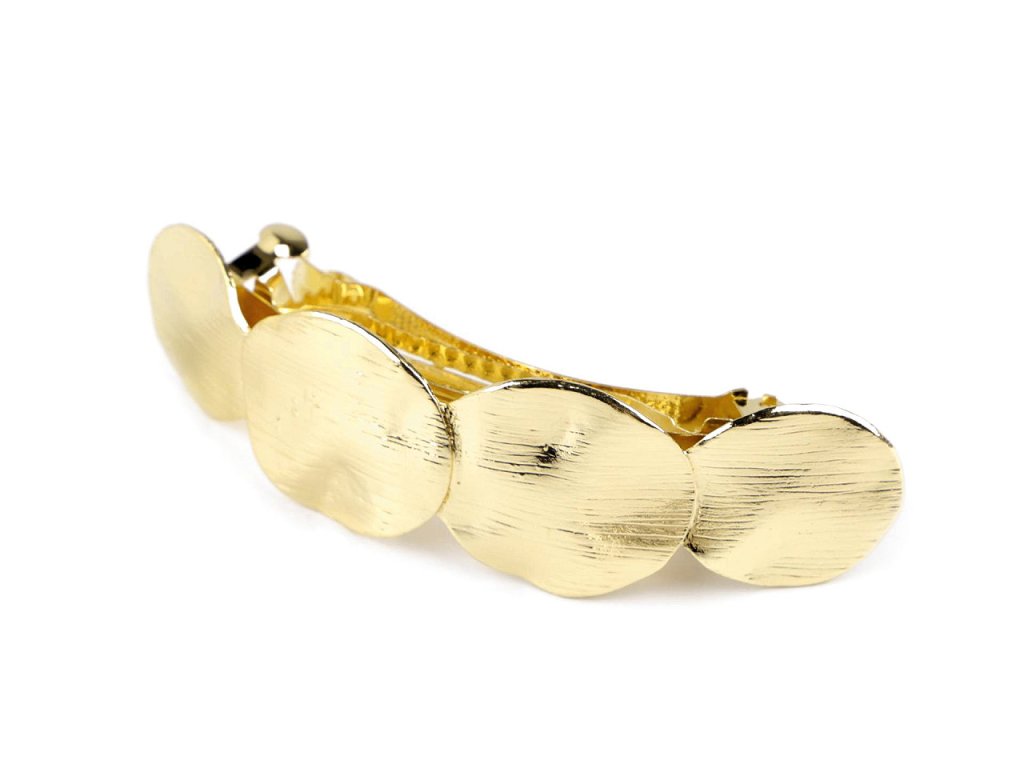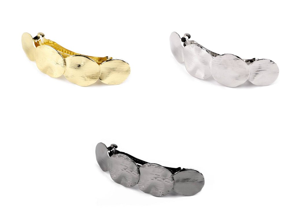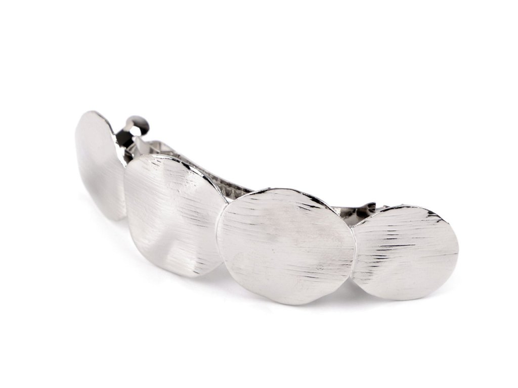 Celokovová francouzská spona poutavě ozdobí váš účes. Hodí se na společenské akce jako jsou plesy, svatby, návštěvy divadel, párty apod., ale využijete ji i na běžné nošení. Design spony je moderní a zároveň nadčasový, je ideálním doplňkem do každého šatníku. Dokáže udržet vlasy pevně na svém místě a přitom dodává účesu půvab a eleganci.