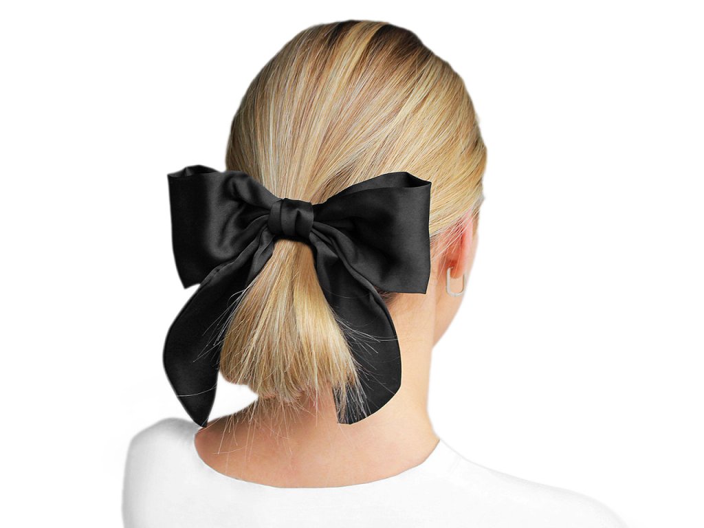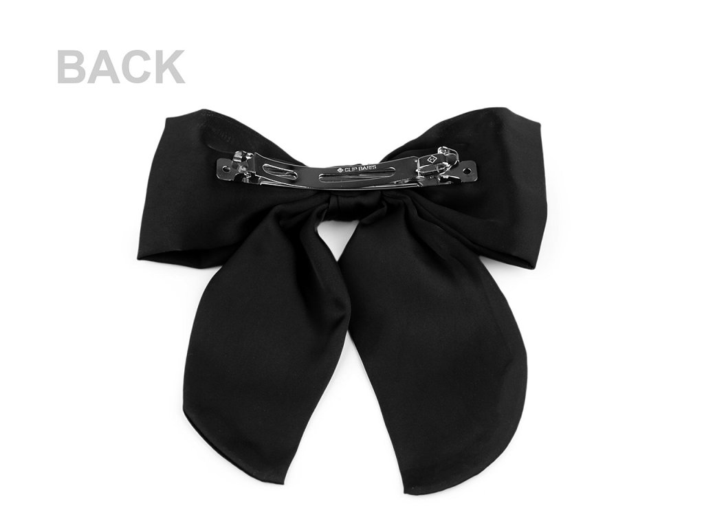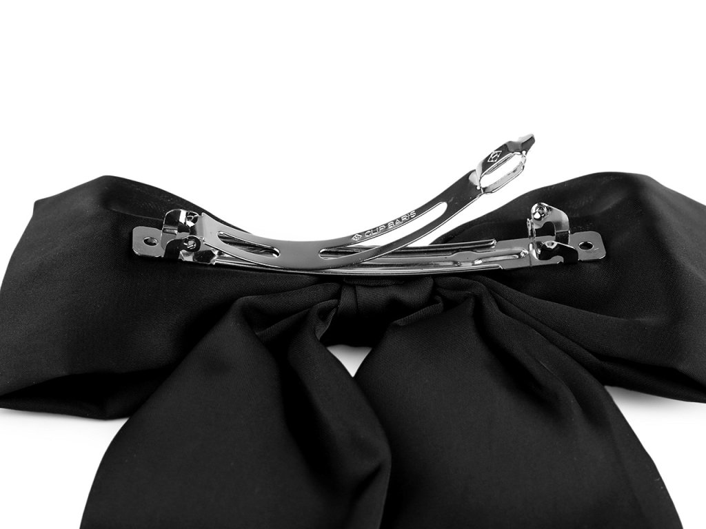 Francouzská spona s mašlí nádherně ozdobí účes na všední den i slavnostní událost. Mašle je elegantní, pečlivě poskládaná, perfektně drží svůj tvar. Je ušitá z měkké, splývávé, nemačkavé látky se saténovým, pololesklým vzhledem. Spona má kvalitní celokovové provedení, zacvakávací mechanismus je pevný.