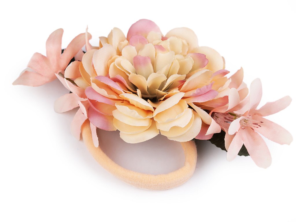 Gumička s květy romanticky ozdobí váš účes. Květy jsou pevně připevněné, na jedné gumičce je 1 květ.