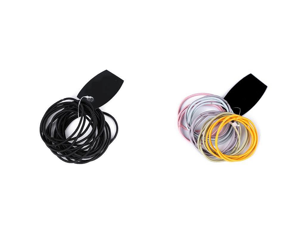 Tenké gumičky do vlasů dobře drží na hrubých i jemných vlasech. Gumičky jsou kulaté, pevné, bez kovové spojky.