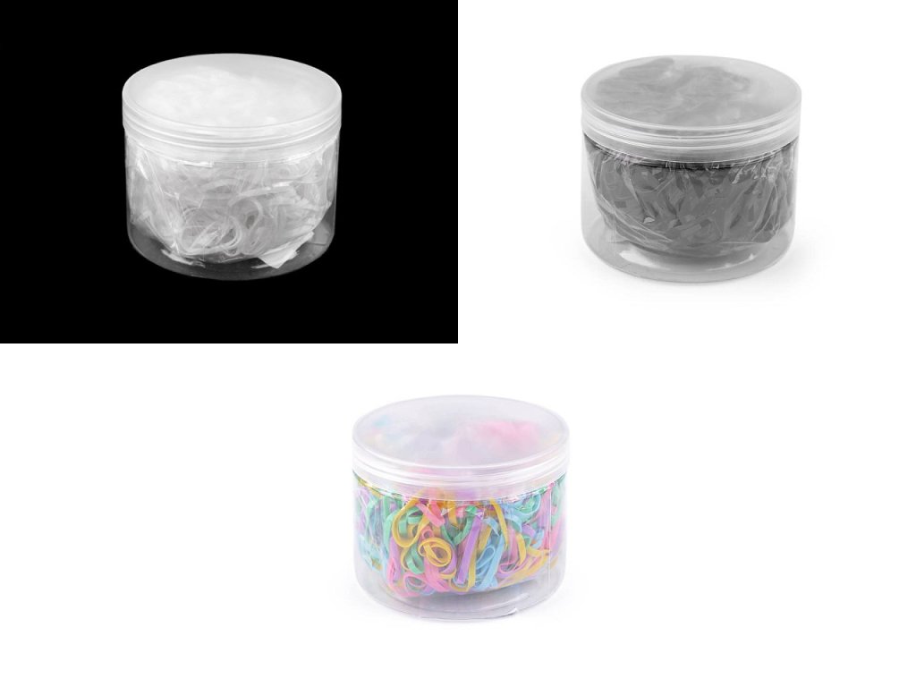 Sada malých silikonových gumiček se hodí vždycky. Ať už vytváříte složité účesy z velkého množství copánků nebo češete malé dívky s jemnými vlásky, malé gumičky oceníte. Jsou pružné, využijete je i běžně v domácnosti. Dodáváme je v plastové dóze se šroubovacím uzávěrem.