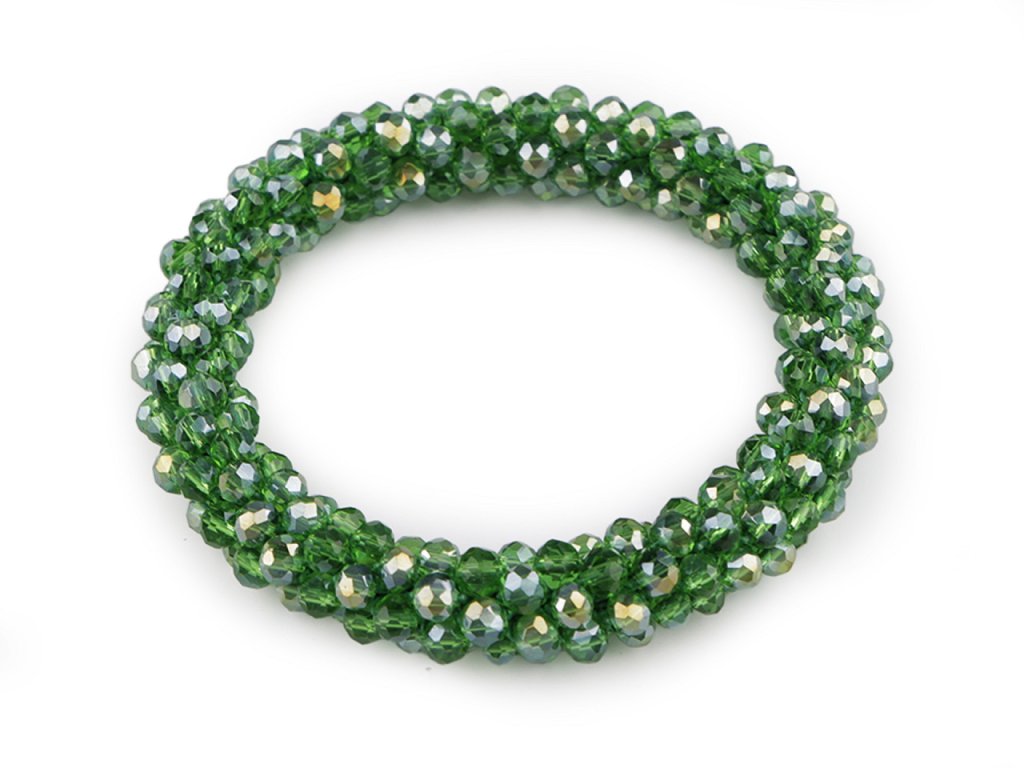 Elegantní náramek ze skleněných korálků zaujme svým třpytem a precizním zpracováním. Brus na korálcích způsobuje působivý lesk. Díky pružence má univerzální velikost, snadno se natáhne na ruku.
