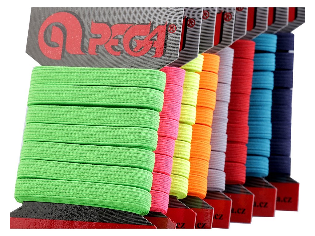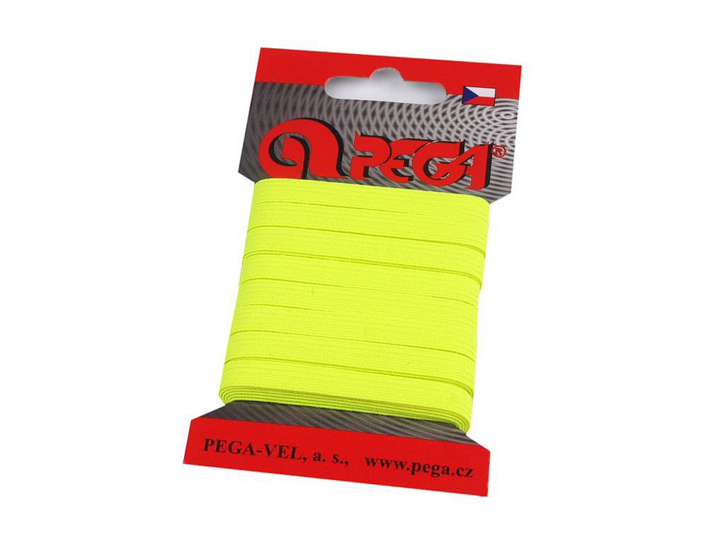 Kvalitní český produkt. Pruženka prádlová, šíře 7 mm, na jedné kartě je navinuto 5 m. Nabízené barvy mají neonové odstíny.